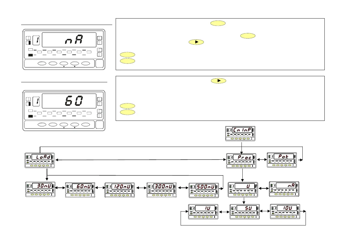 If the option was LoAd, pushing can choose among [±30mV, ±60mV,