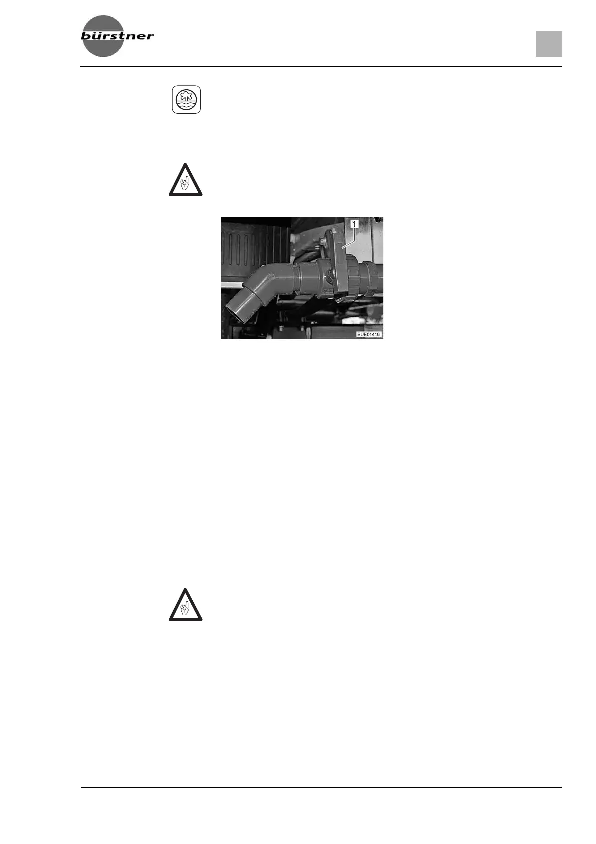 Turn the handle (Fig. 203,1) of the drain cock in flow direction.