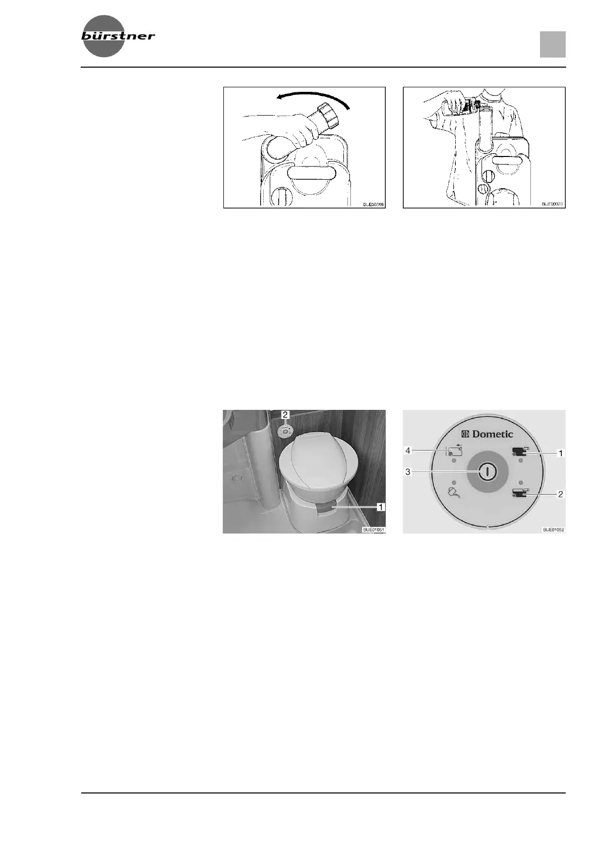 The indicator lamp (Fig. 247,1) goes on whenever the sewage tank has to be