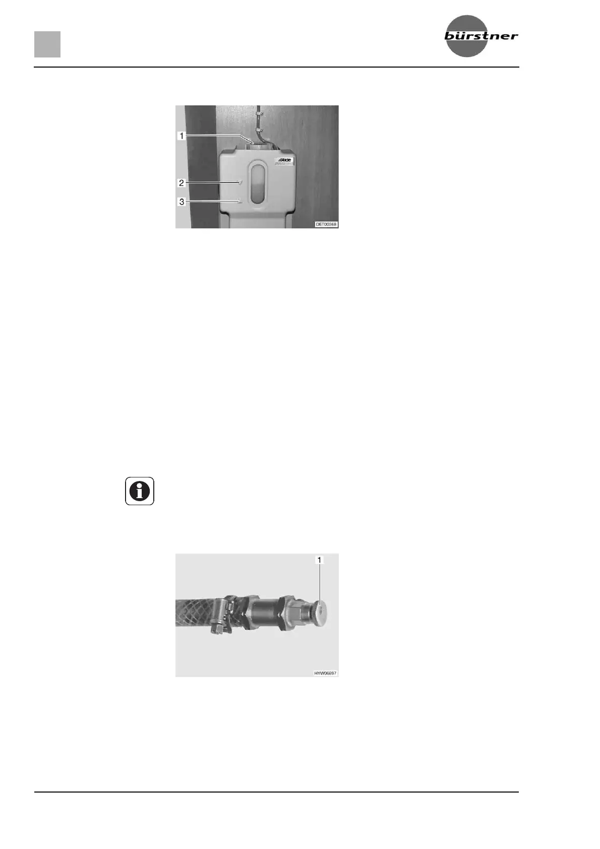 Fill water frost protection mixture slowly into the compensator reservoir.