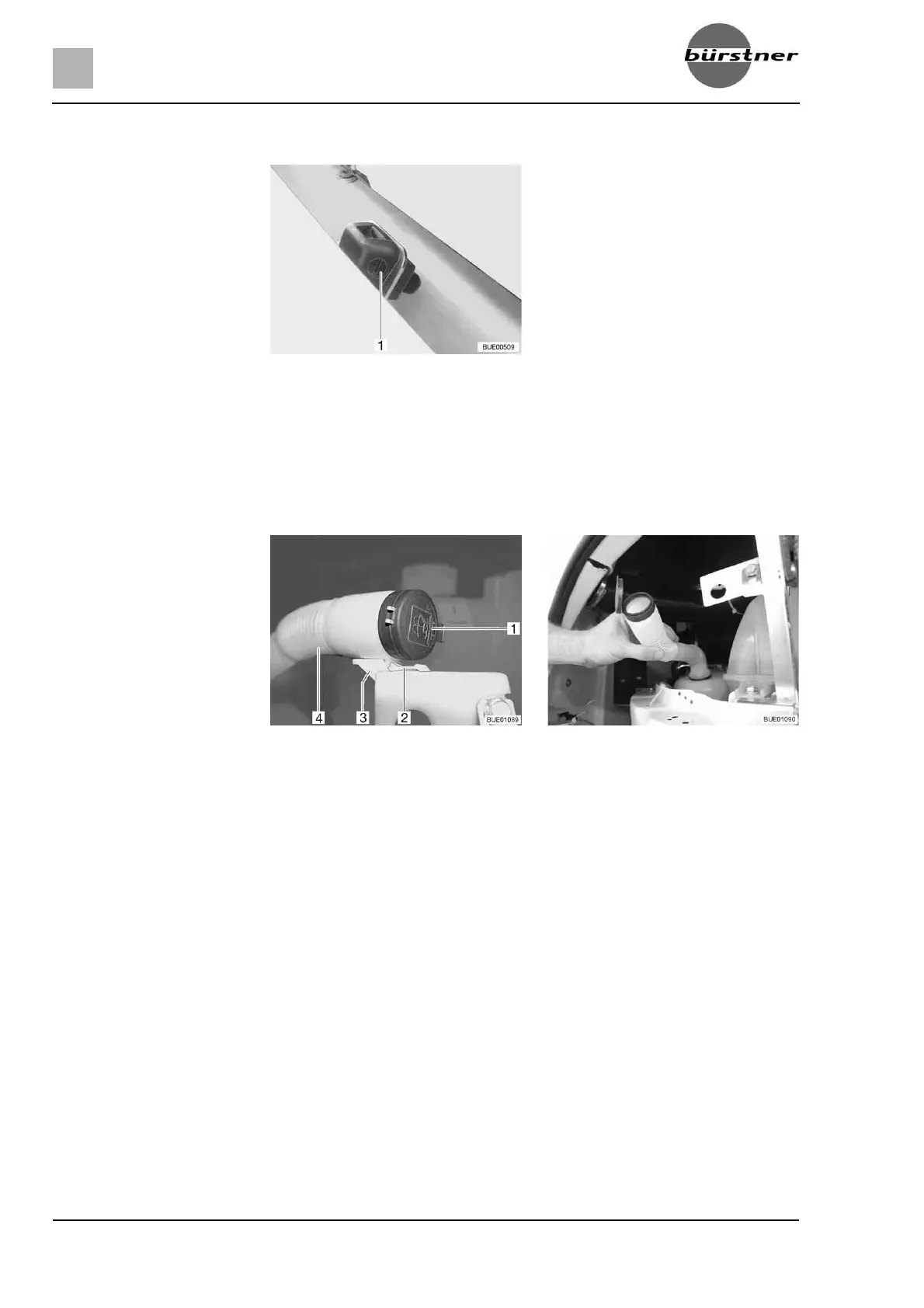 Remove the lid (Fig. 31,1) from the filler neck of the washer fluid container.