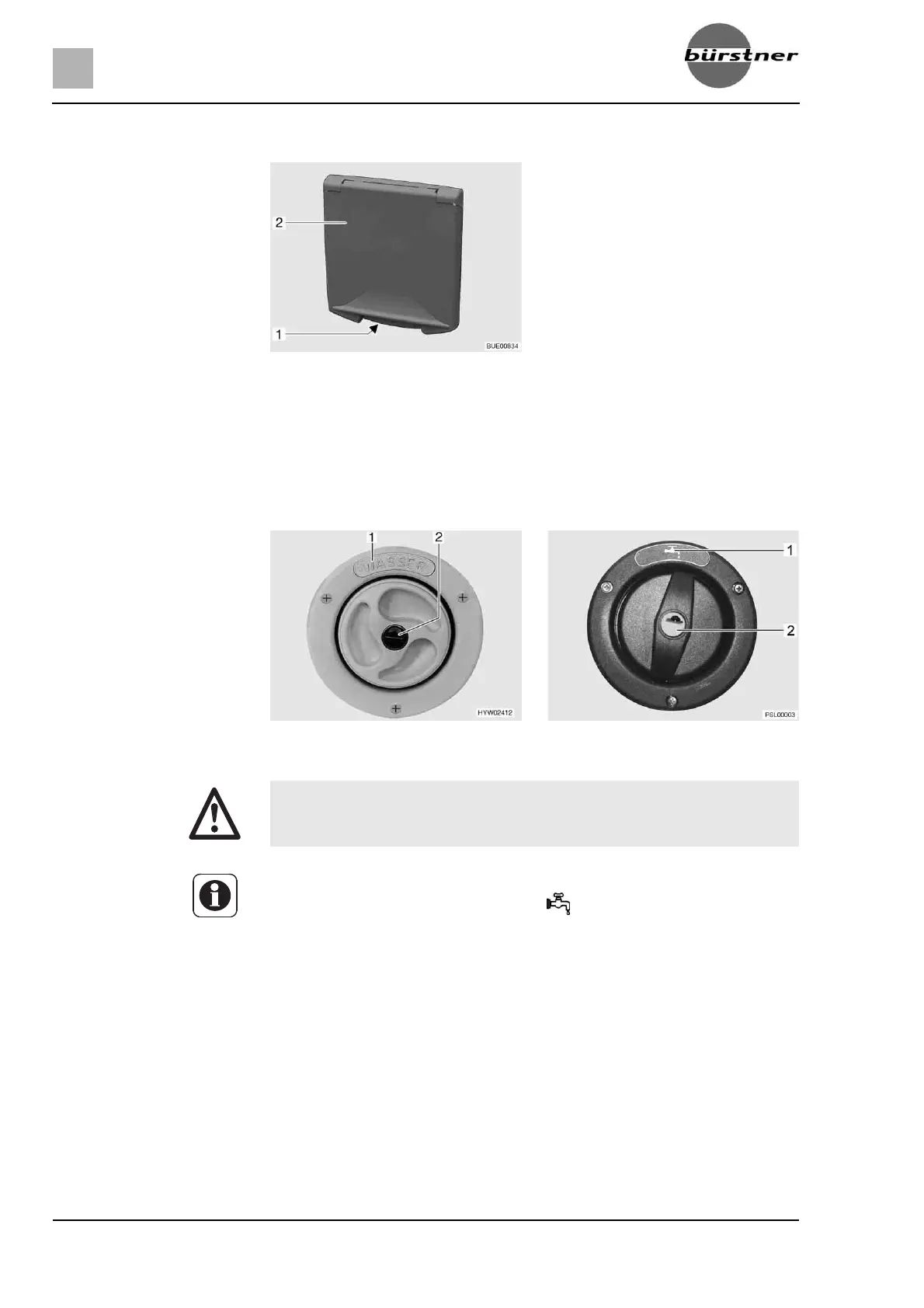 X The cap for the drinking water filler neck and for the fuel filler neck are