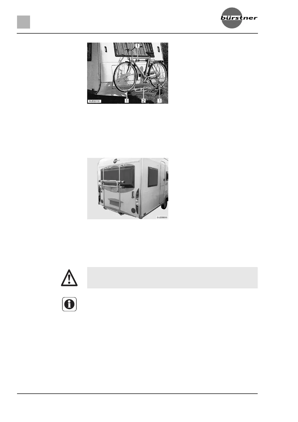 Bike rack on the rear wall Depending on the model, the bike rack is either screwed directly onto the rear