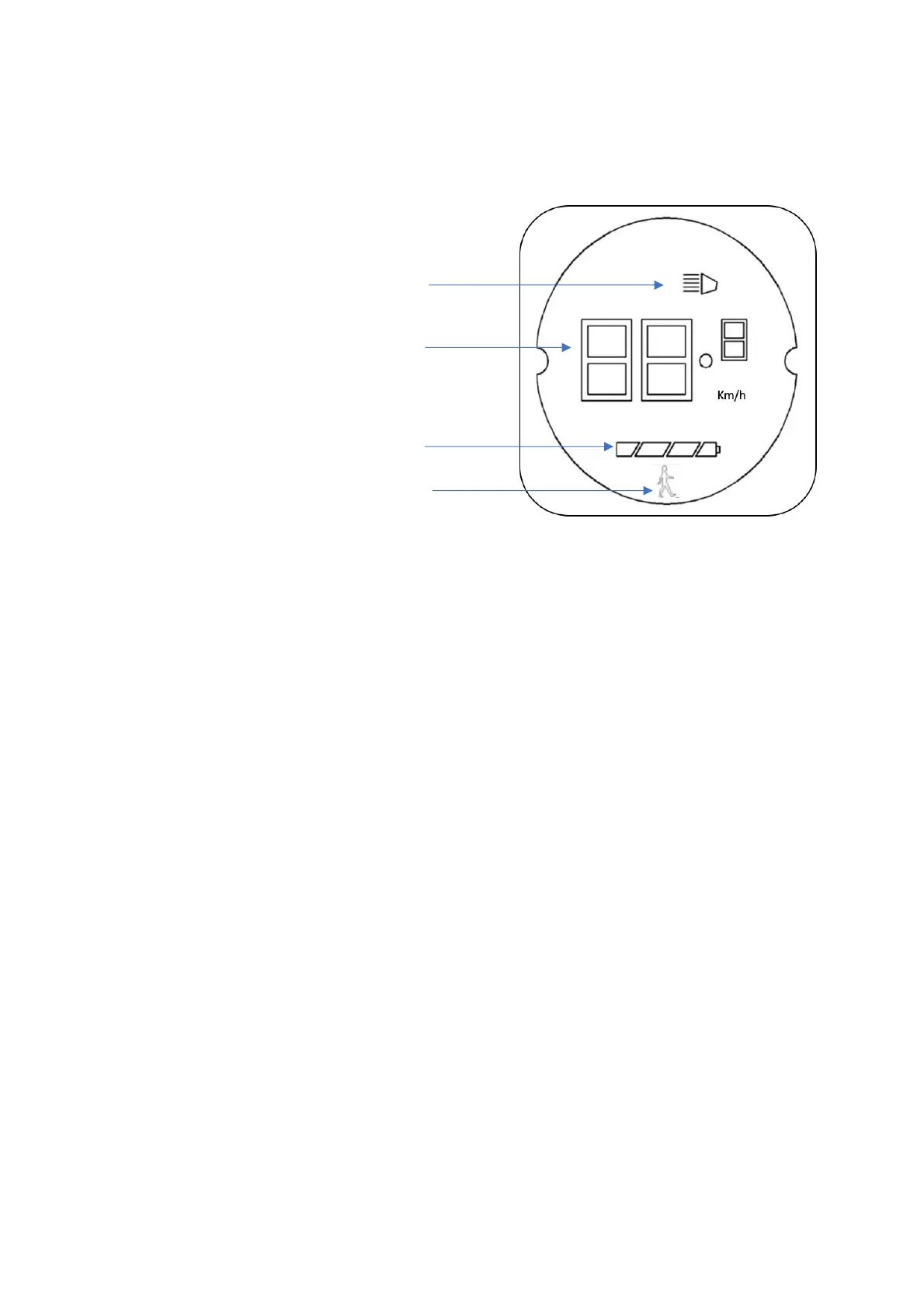 The display console, located on the handlebars, displays the status of the scooter, providing