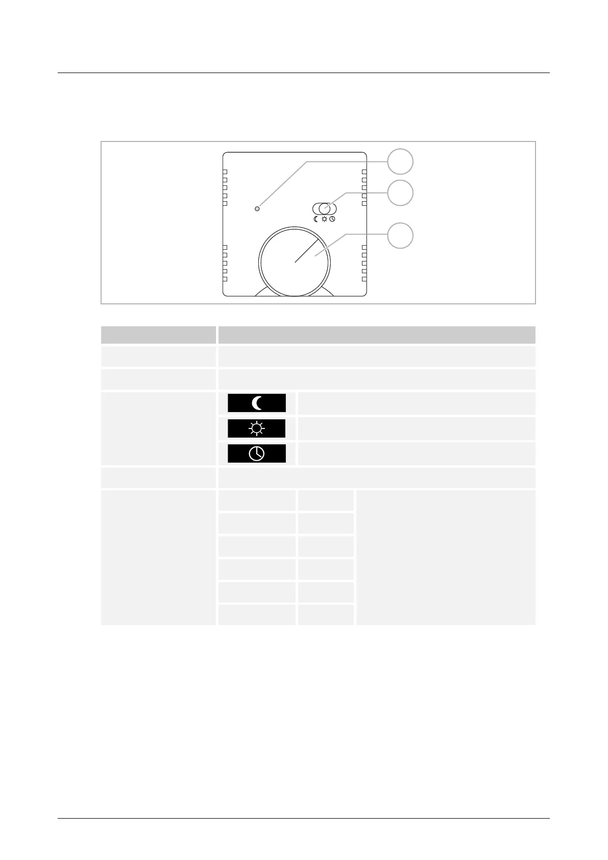 3 Adjusting knob for selecting the desired room temperature