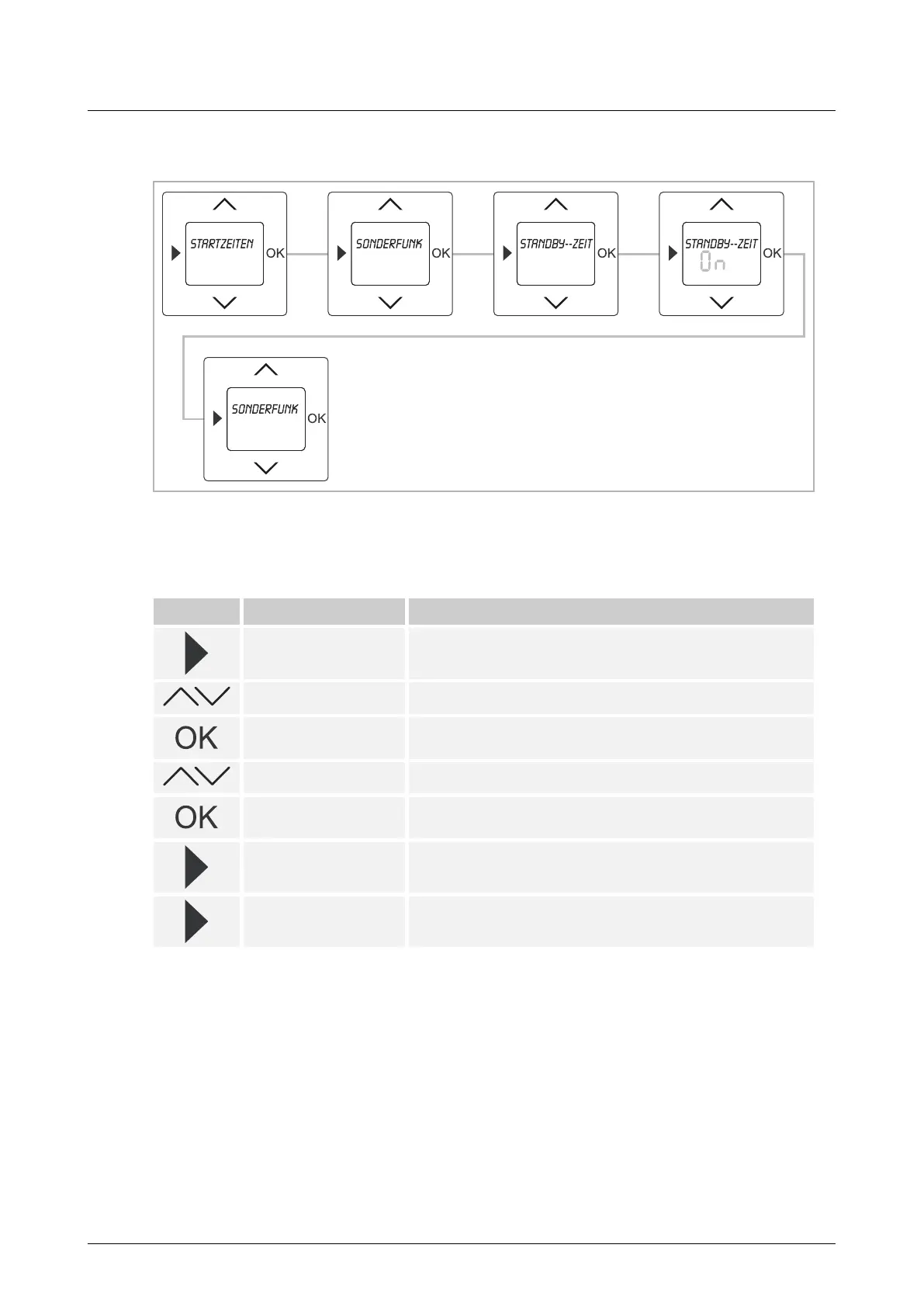 – Press the OK button to select menu item "Standby times".
