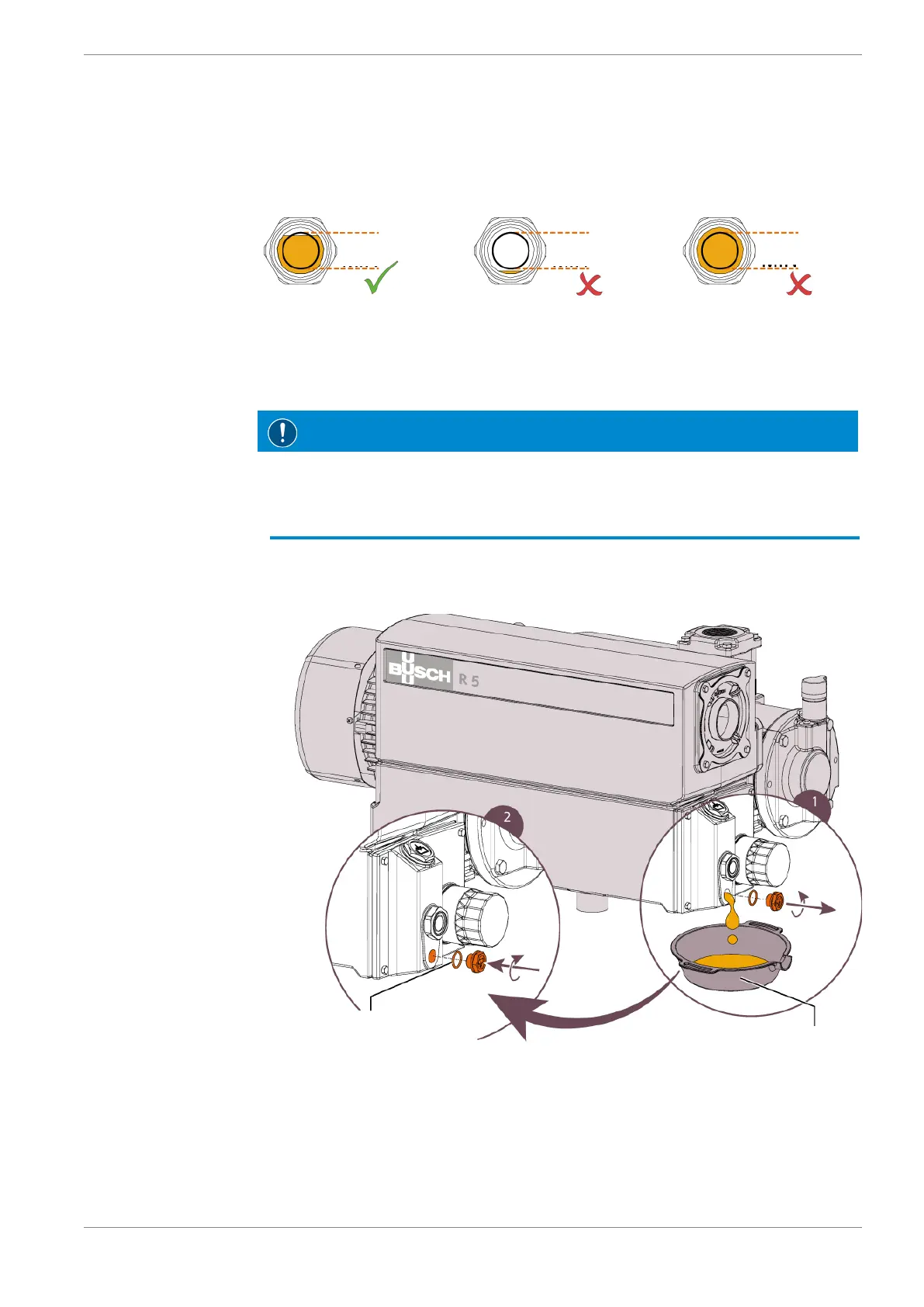 • Wait 1 minute after switching off the vacuum pumps, before checking the oil level.