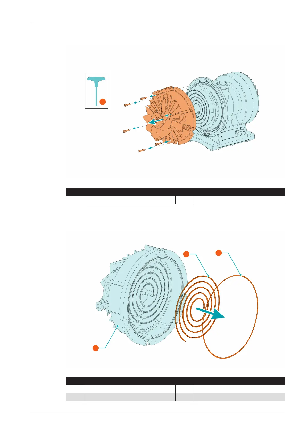 ● Unscrew the six screws of the fixed scroll and slowly remove with care the fixed scroll.