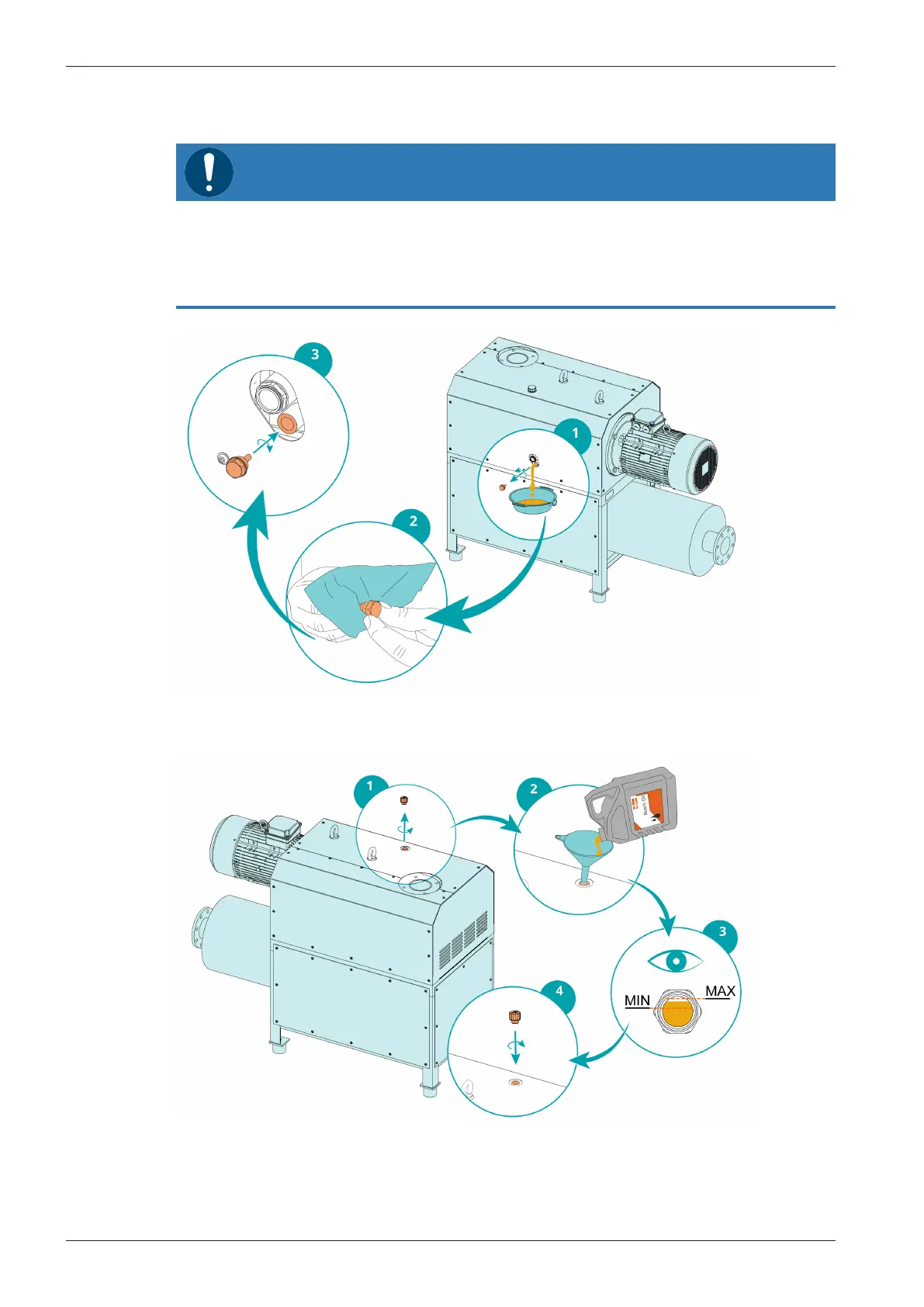 ● Only use an oil type which has previously been approved and recommended by Busch.