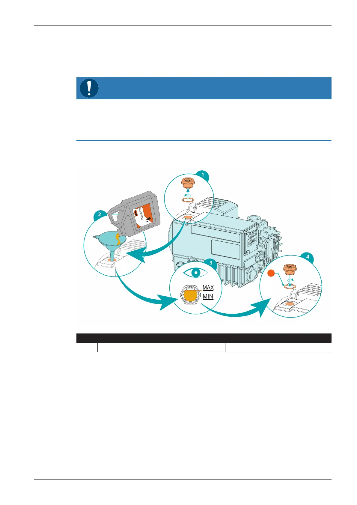 For oil type and oil capacity see Technical Data [➔25] and Oil [➔26].