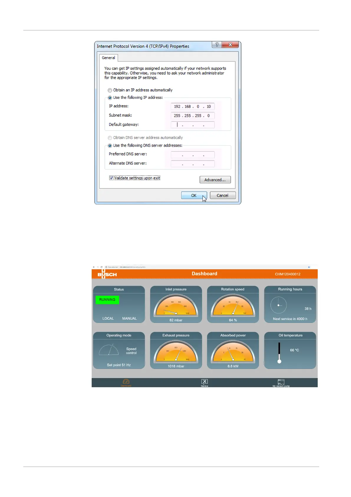 to monitor in the address bar, followed by: :8080/smartpump.htm. By default, the