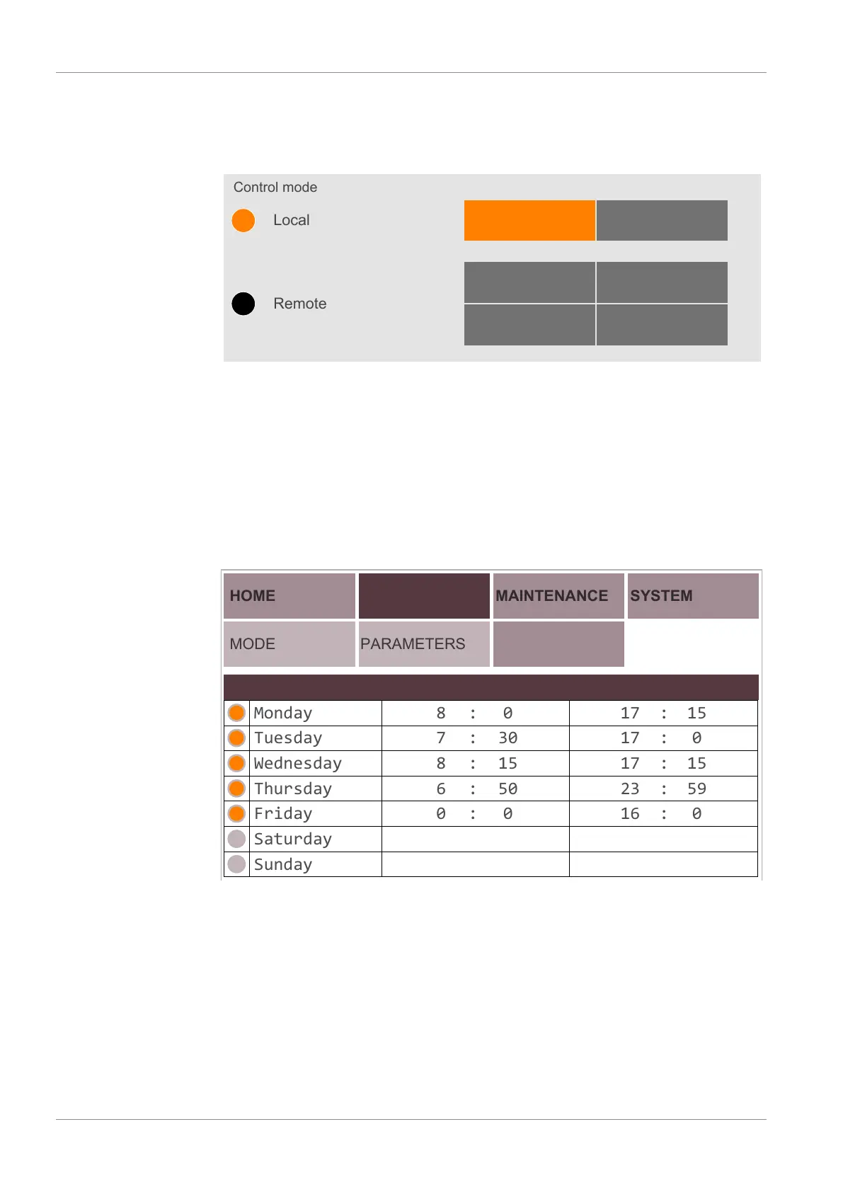 As soon as the schedule is filled in, the control mode “Local/Auto” has to be activated