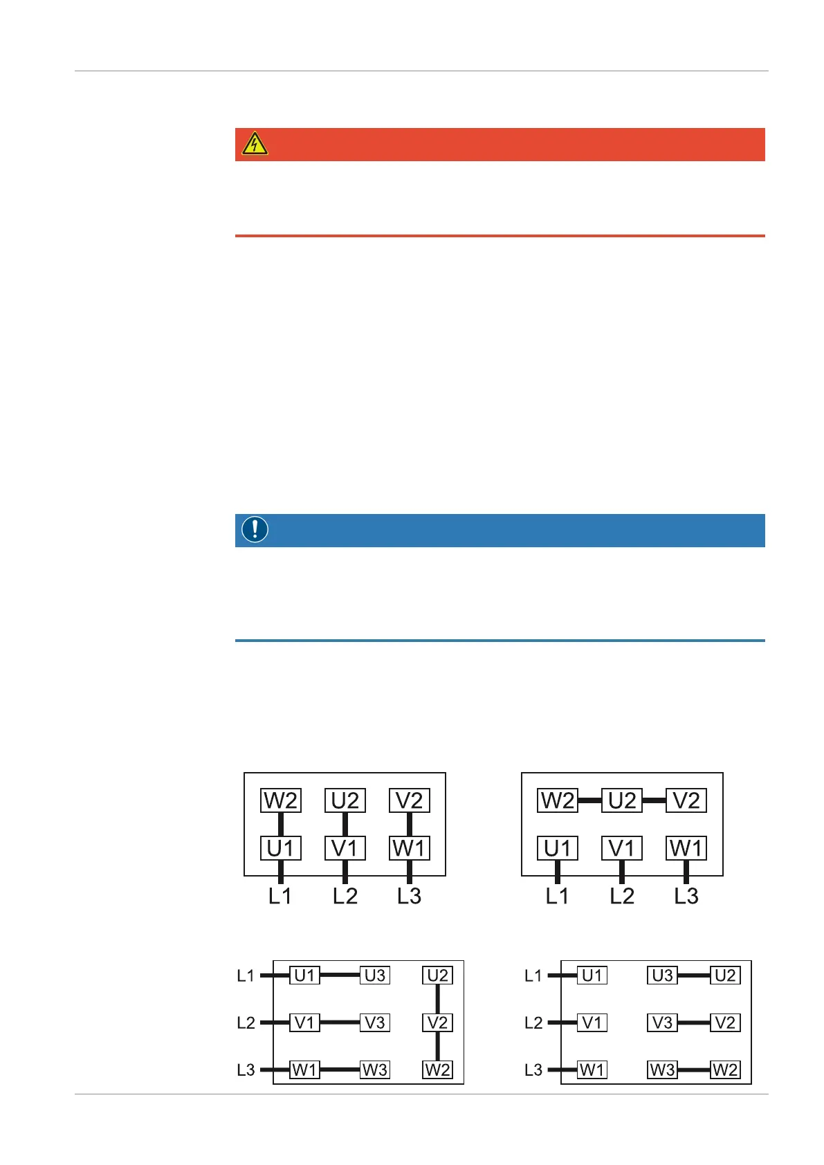 Delta connection (low voltage): Star connection (high voltage):