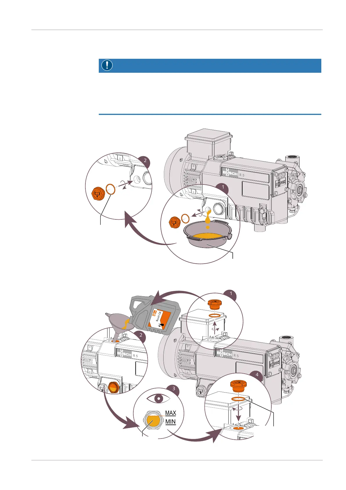 Only use an oil type which has previously been approved and recommended by Busch.