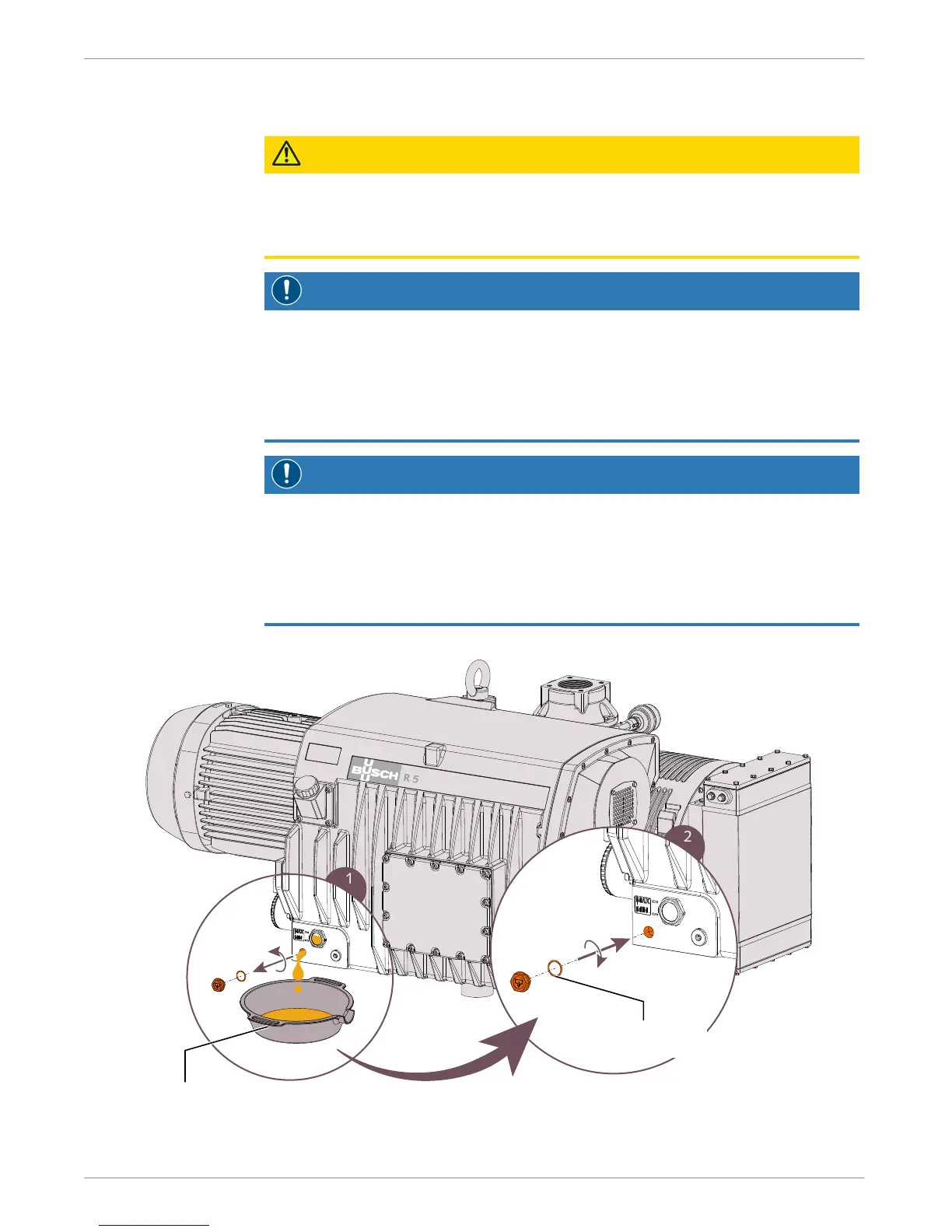 Risk of burns! Hot gasses may escape through the oil fill port.