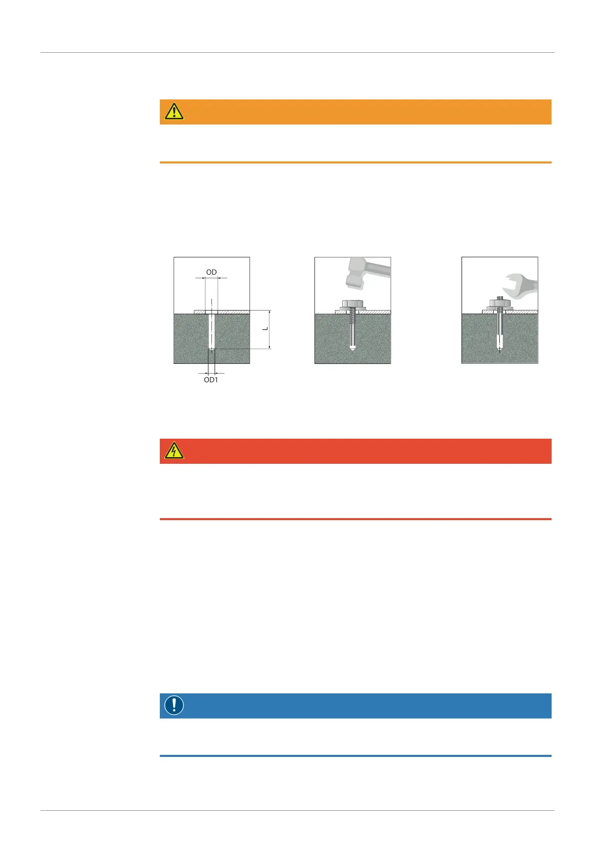 After being set in its position, the machine must be anchored to the floor.