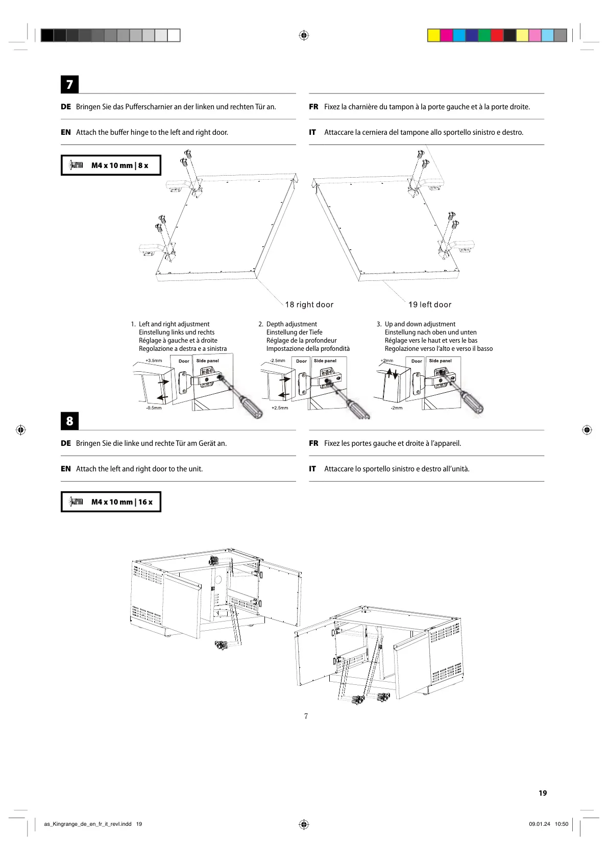 DE Bringen Sie die linke und rechte Tür am Gerät an. FR Fixez les portes gauche et droite à l’appareil.