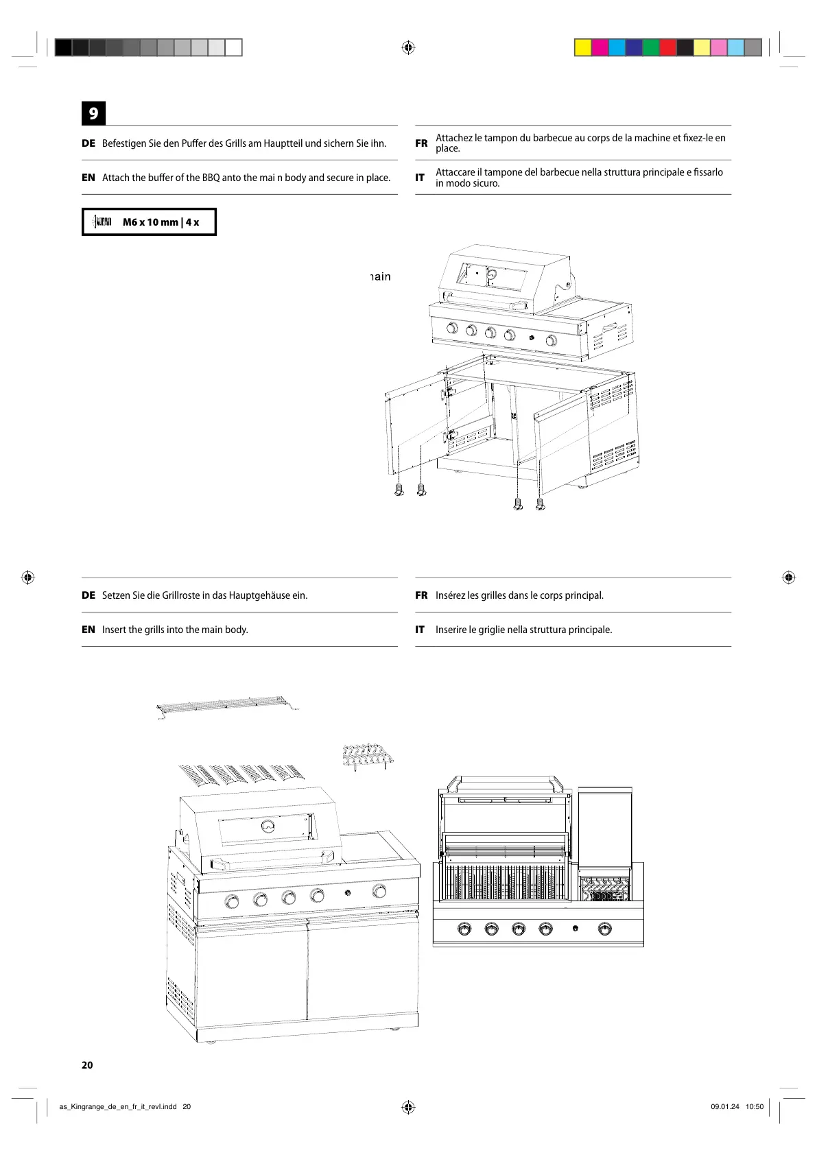 EN Attach the buer of the BBQ anto the mai n body and secure in place. IT