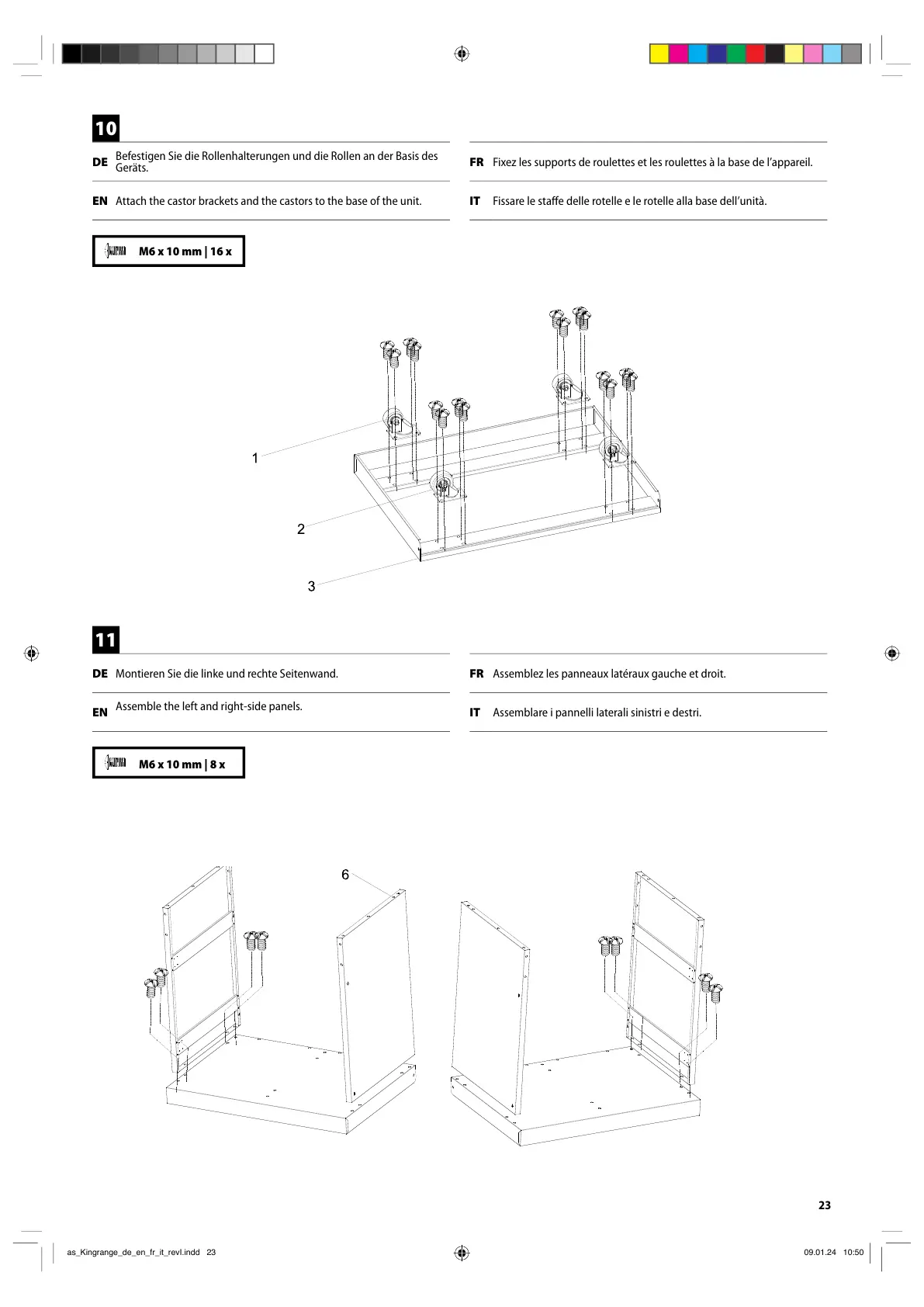 EN Attach the castor brackets and the castors to the base of the unit. IT Fissare le stae delle rotelle e le rotelle alla base dell’unità.