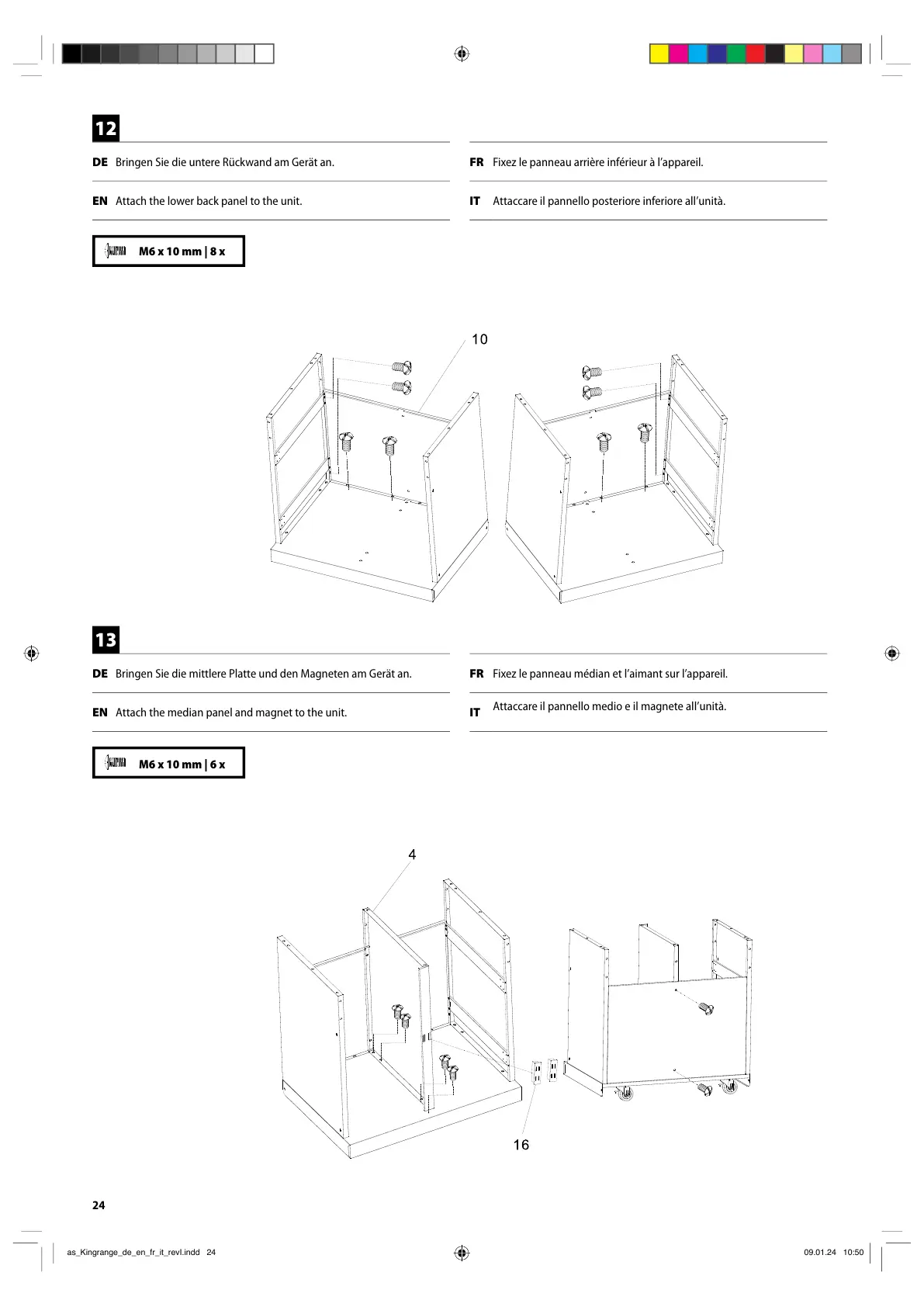 DE Bringen Sie die untere Rückwand am Gerät an. FR Fixez le panneau arrière inférieur à l’appareil.