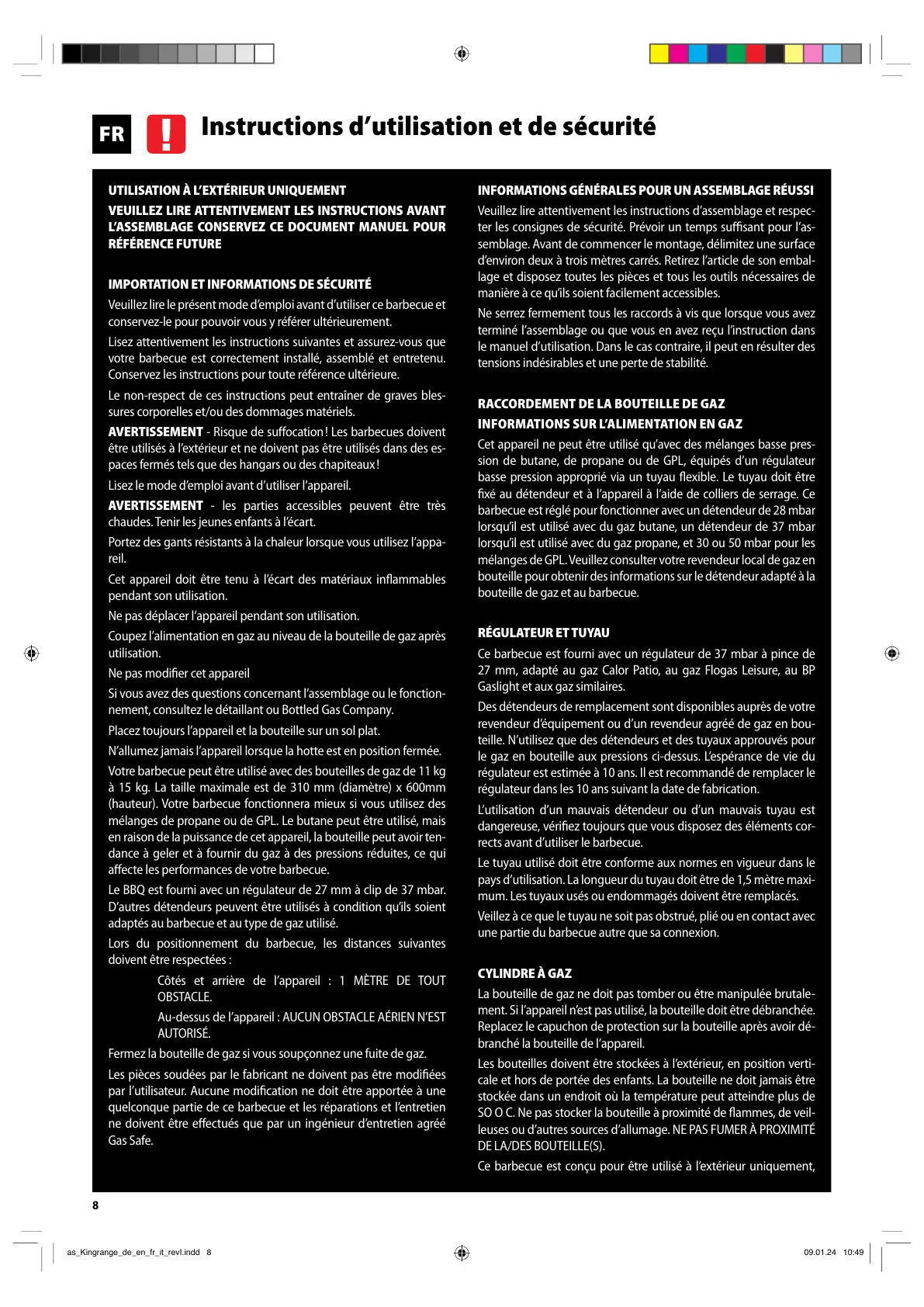 lorsqu’il est utilisé avec du gaz propane, et 30 ou 50mbar pour les