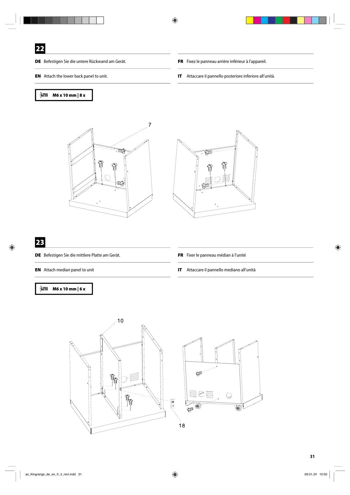 EN Attach the lower back panel to unit. IT Attaccare il pannello posteriore inferiore all’unità.