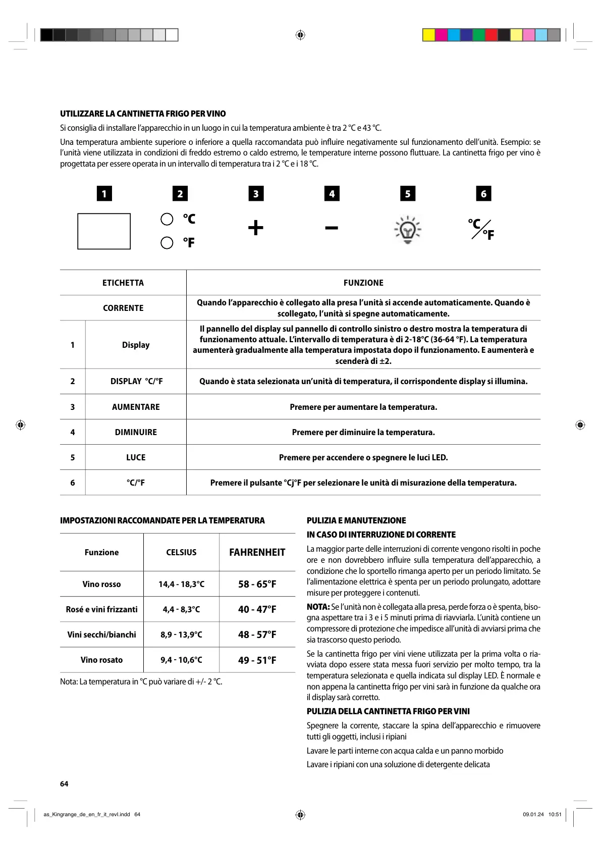 funzionamento attuale. L’intervallo di temperatura è di 2-18°C (36-64 °F). La temperatura
