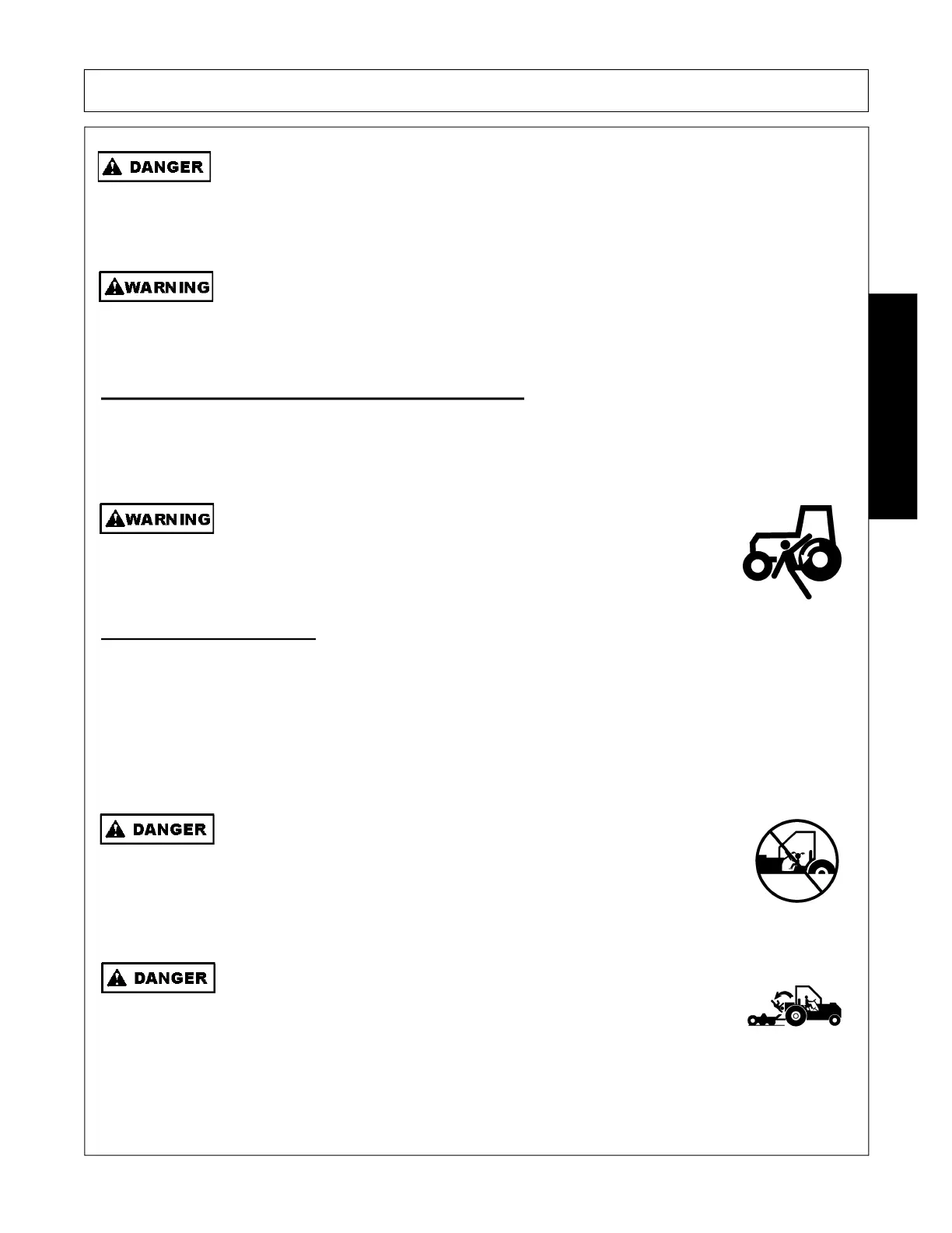Before getting onto the tractor, the operator must read and completely understand the implement and tractor