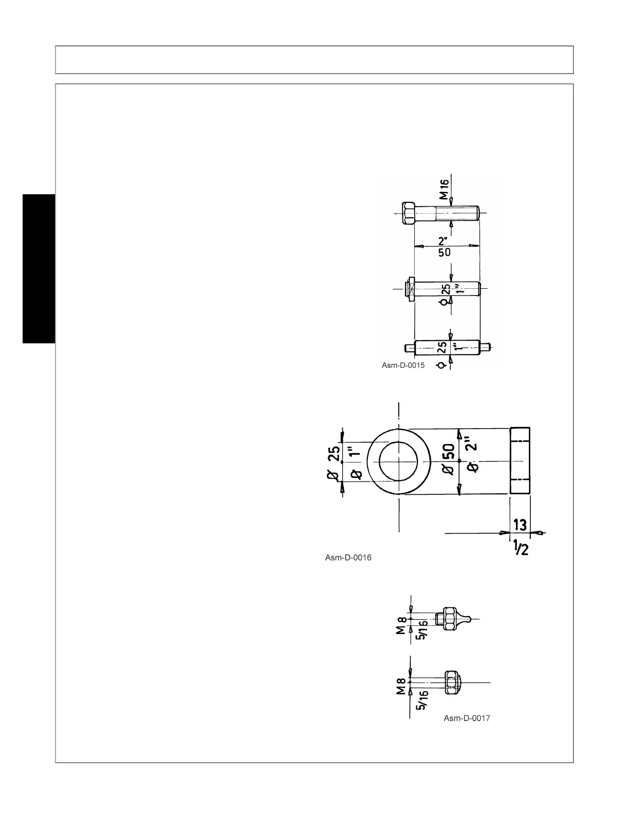 long, will be listed as: D 25x50 (D 1”x2”) and M16x50