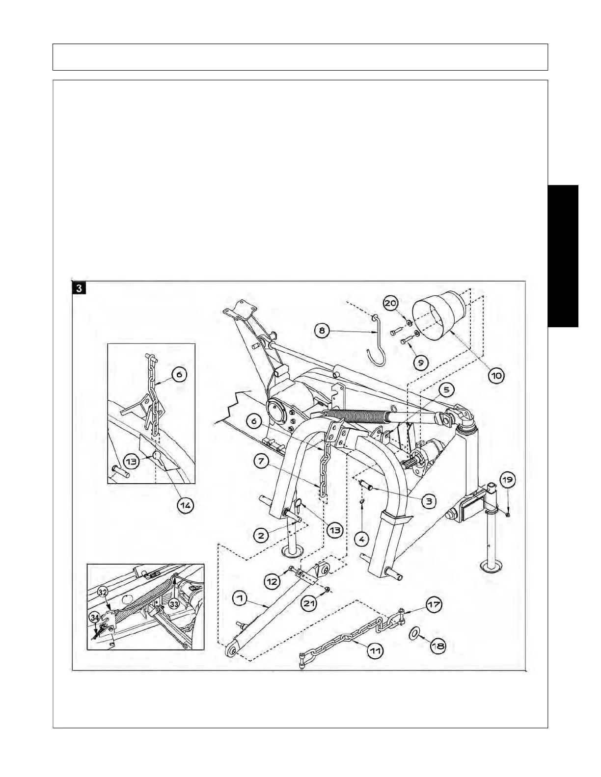 2. Use pin 3 D 20 x 67 (D 3/4” x 2”5/8) to assemble safety bar 1 into slot 5 and fasten into position with E-clip
