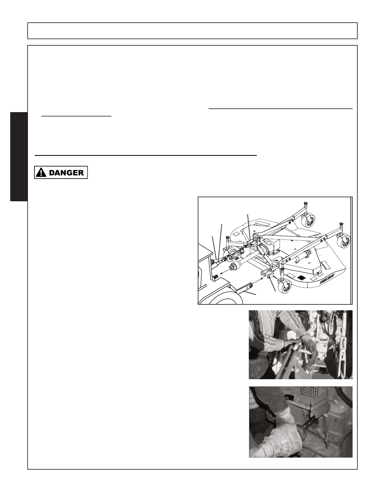 tractor PTO shaft. Lay the driveline down carefully to avoid damaging the dri-