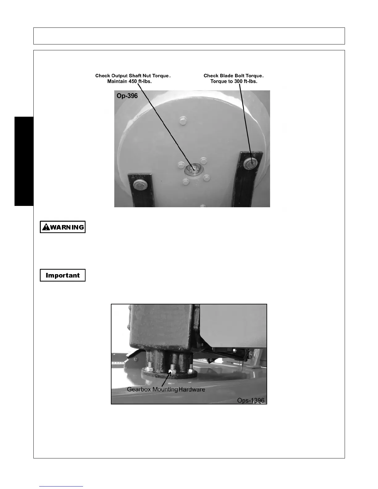 To help prevent structural damage caused by loose hardware, tighten gearbox mounting