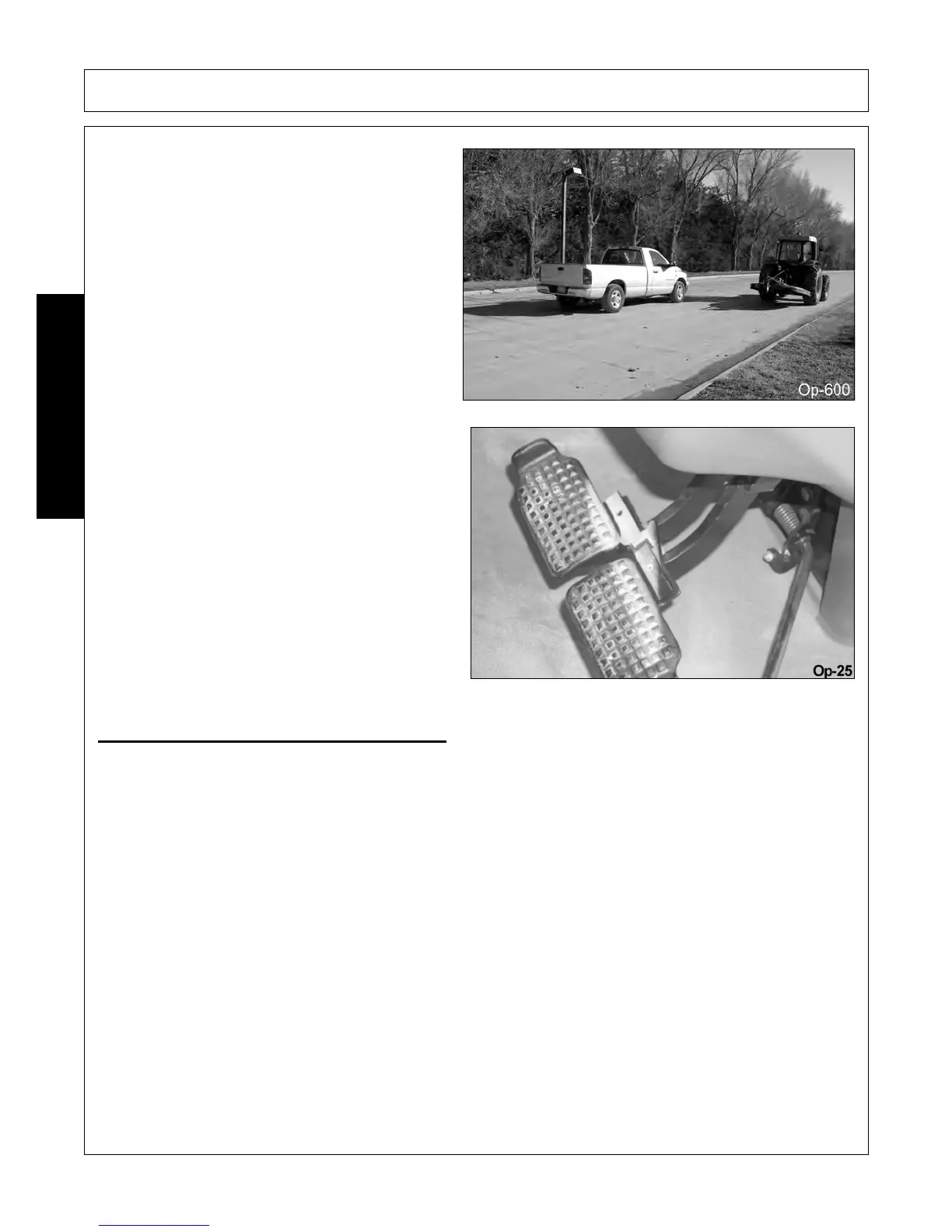While hauling the tractor and implement, make occasional stops to check that the tractor and implement have