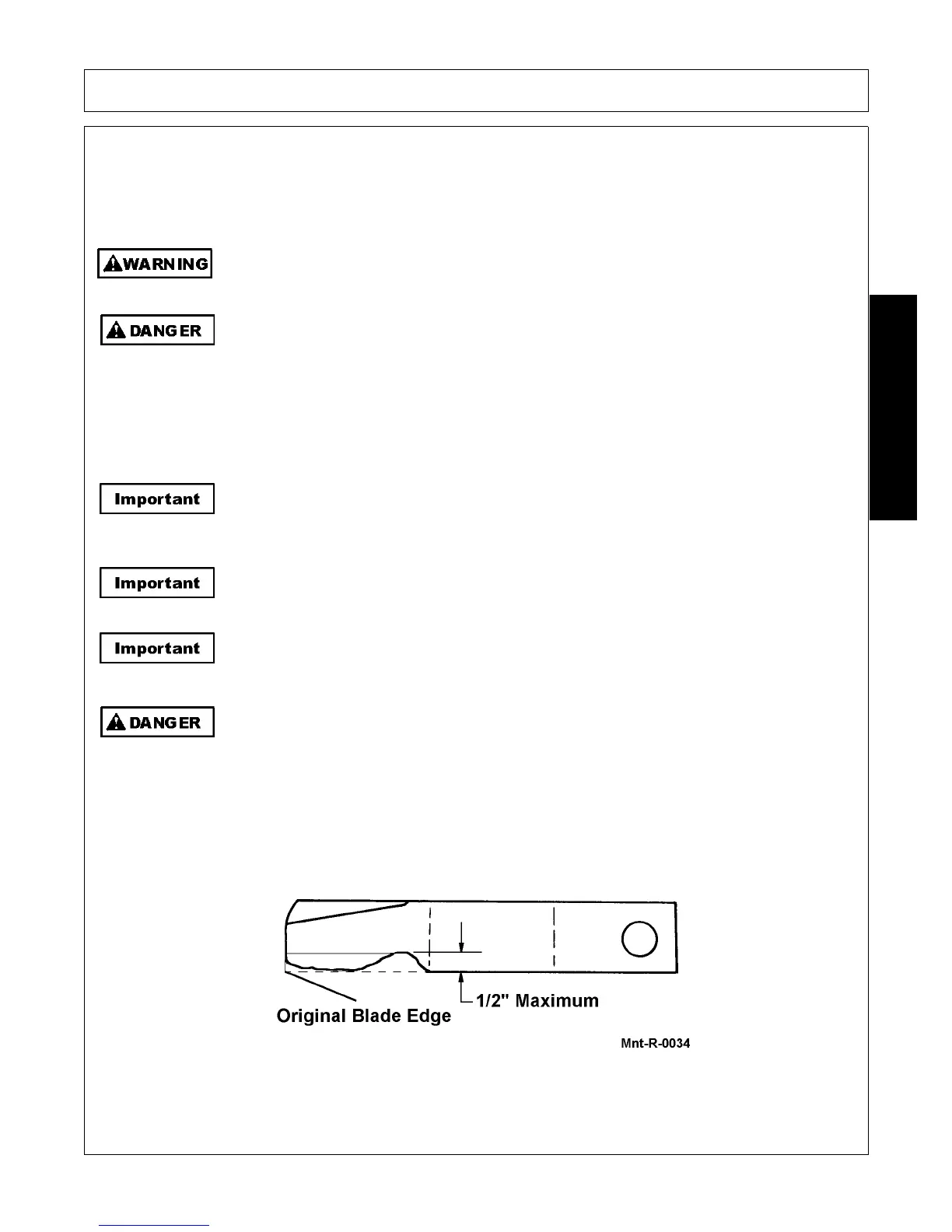 Inspect Blades daily for normal wear. If Blades have a notch worn into the leading worn into