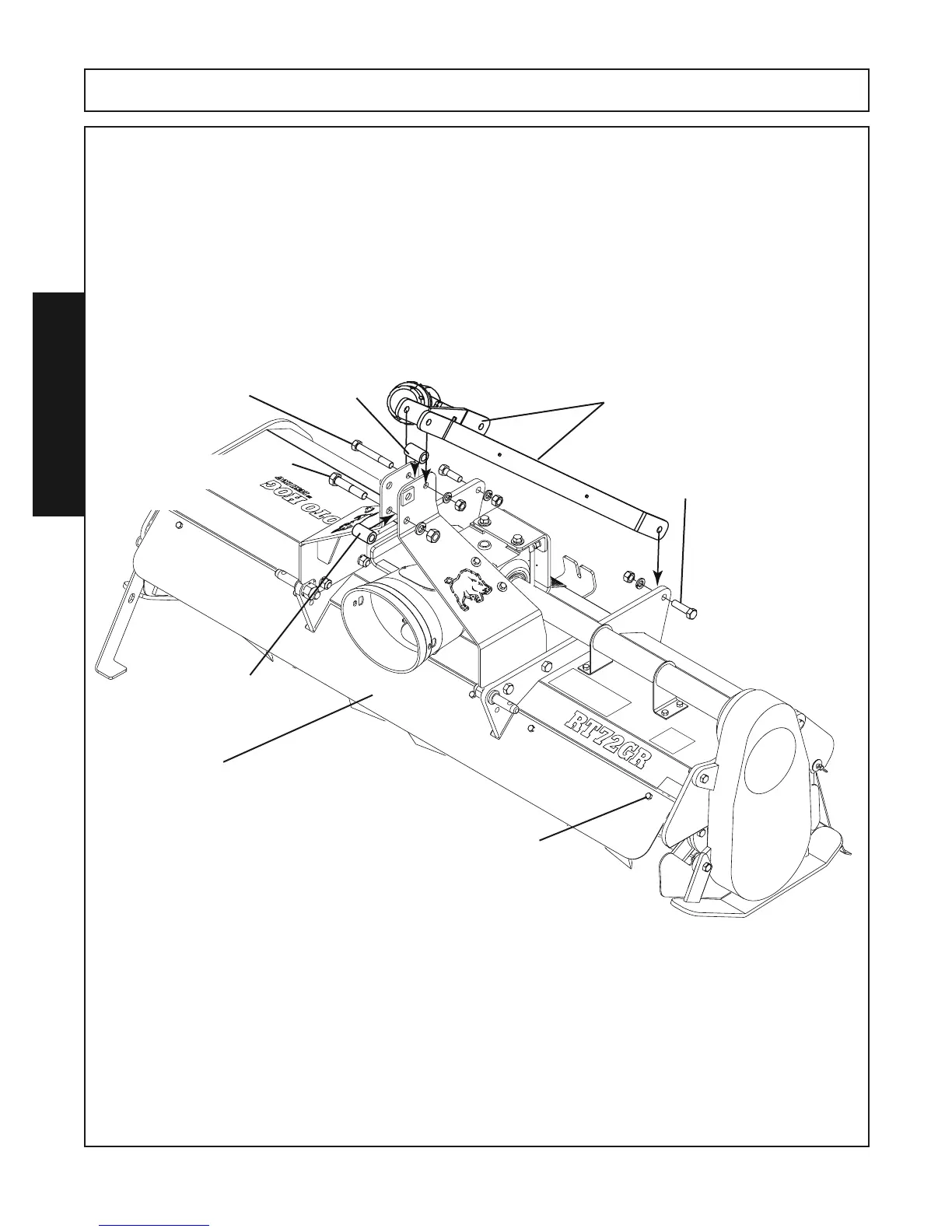diameter) between the “A” frame, align holes. Fasten with a 5/8” x 4-1/2” Gr.5 capscrew, 5/8” lockwasher &
