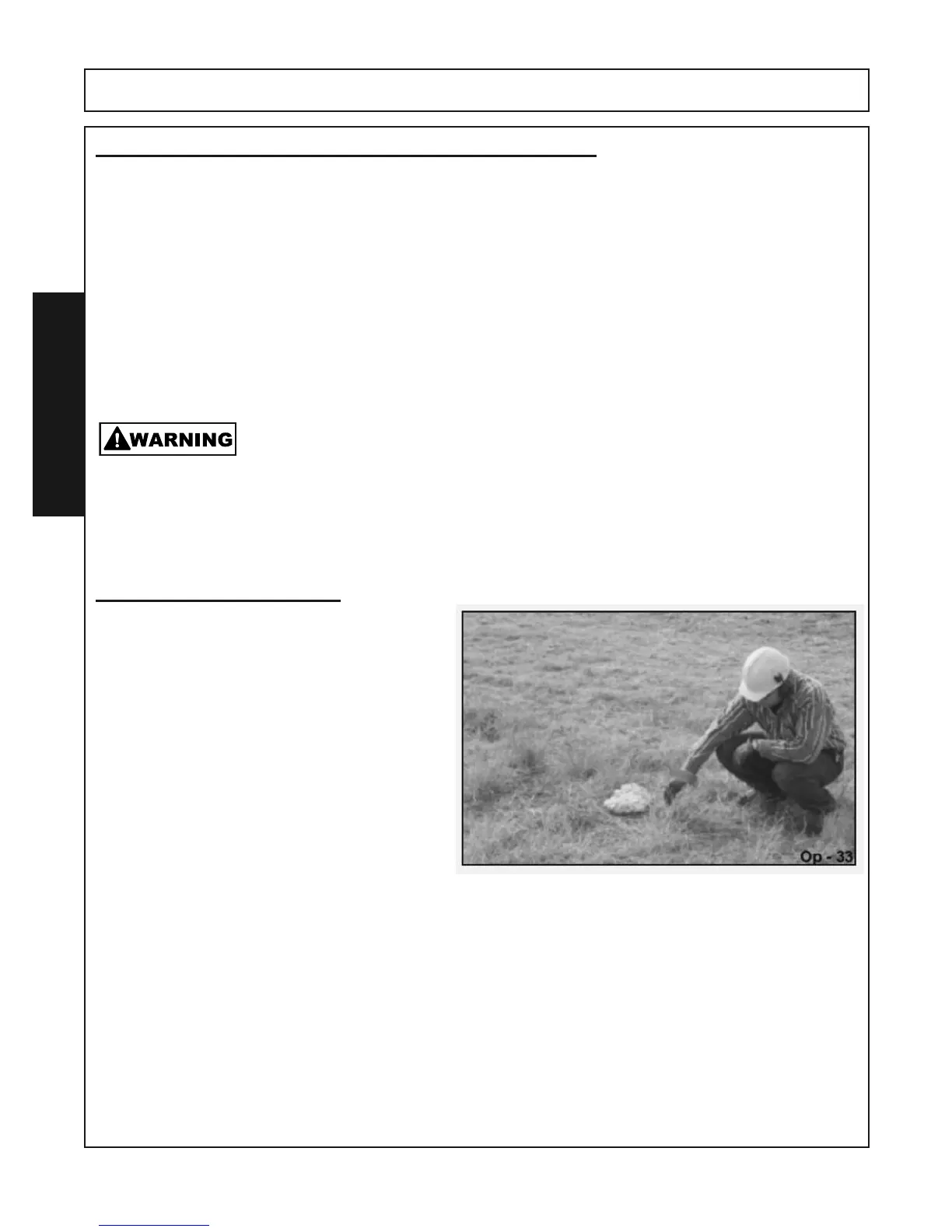 objects before working in tue area. Remove any such objects from the site. Never