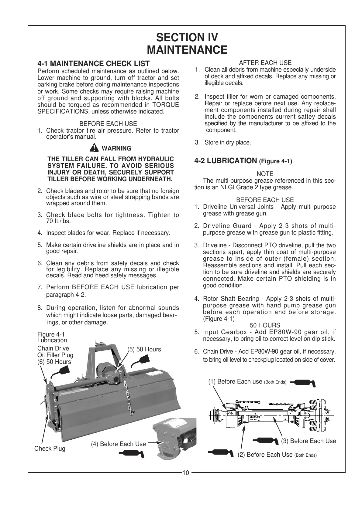 7. Perform BEFORE EACH USE lubrication per