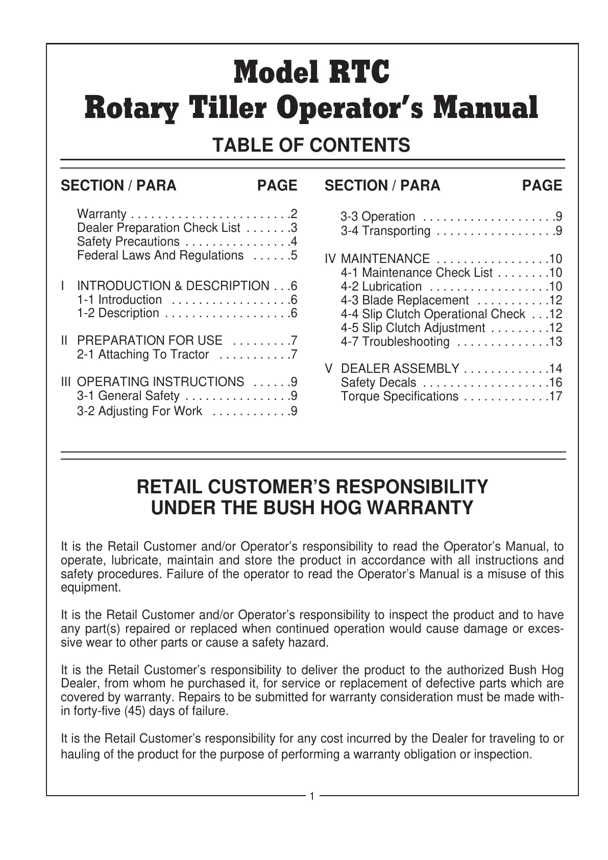 4-5 Slip Clutch Adjustment . . . . . . . . .12