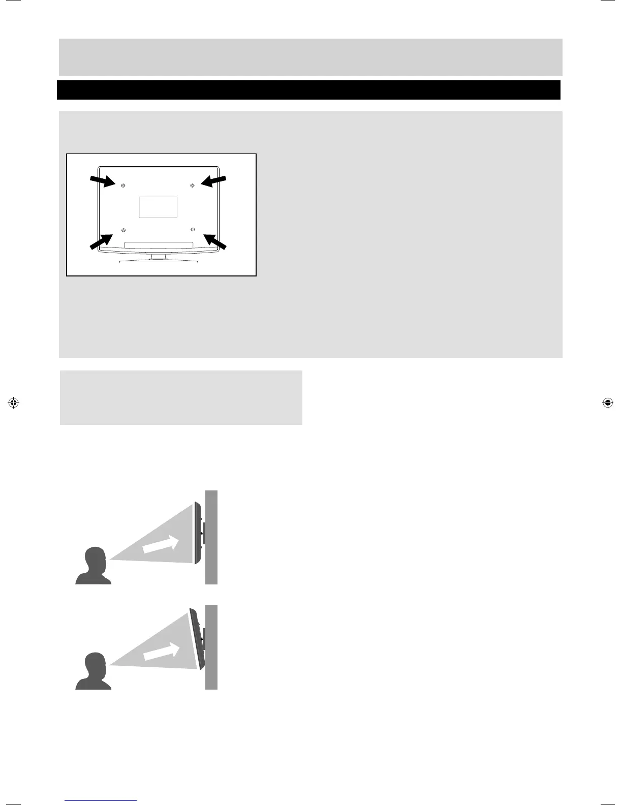 than eye level, the TV should be tilted downwards so