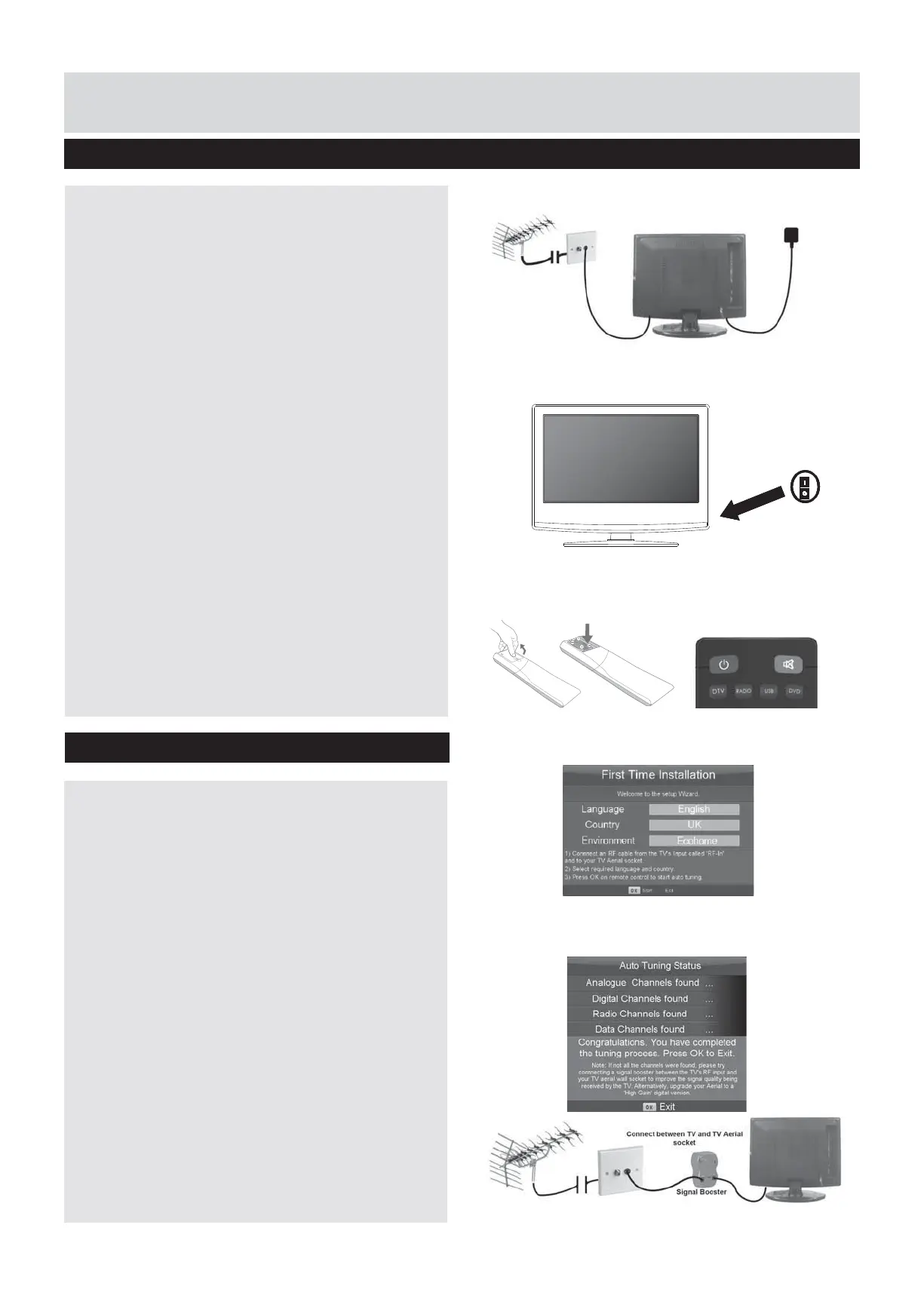 connecting signal booster and re-tuning the TV.