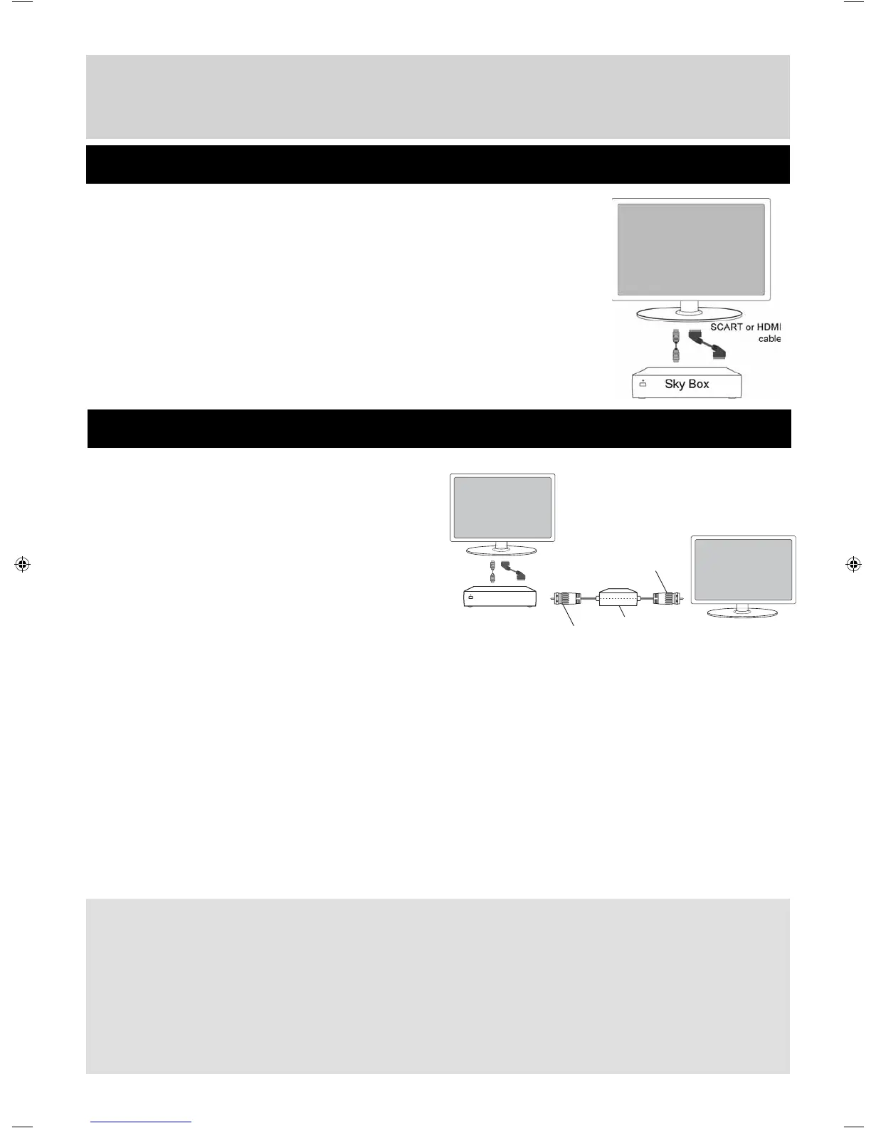 Depending on your Sky Box & TV model, connect either by SCART or HDMI cables