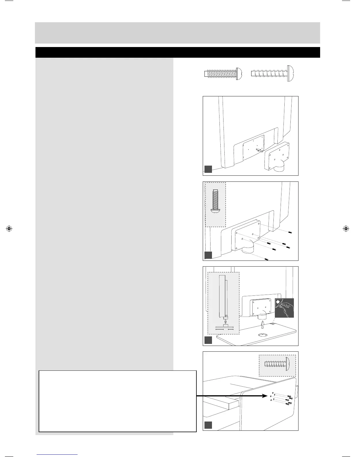 When securing the self-tapping screws into the base of the stand (on fi rst installation) the screws will