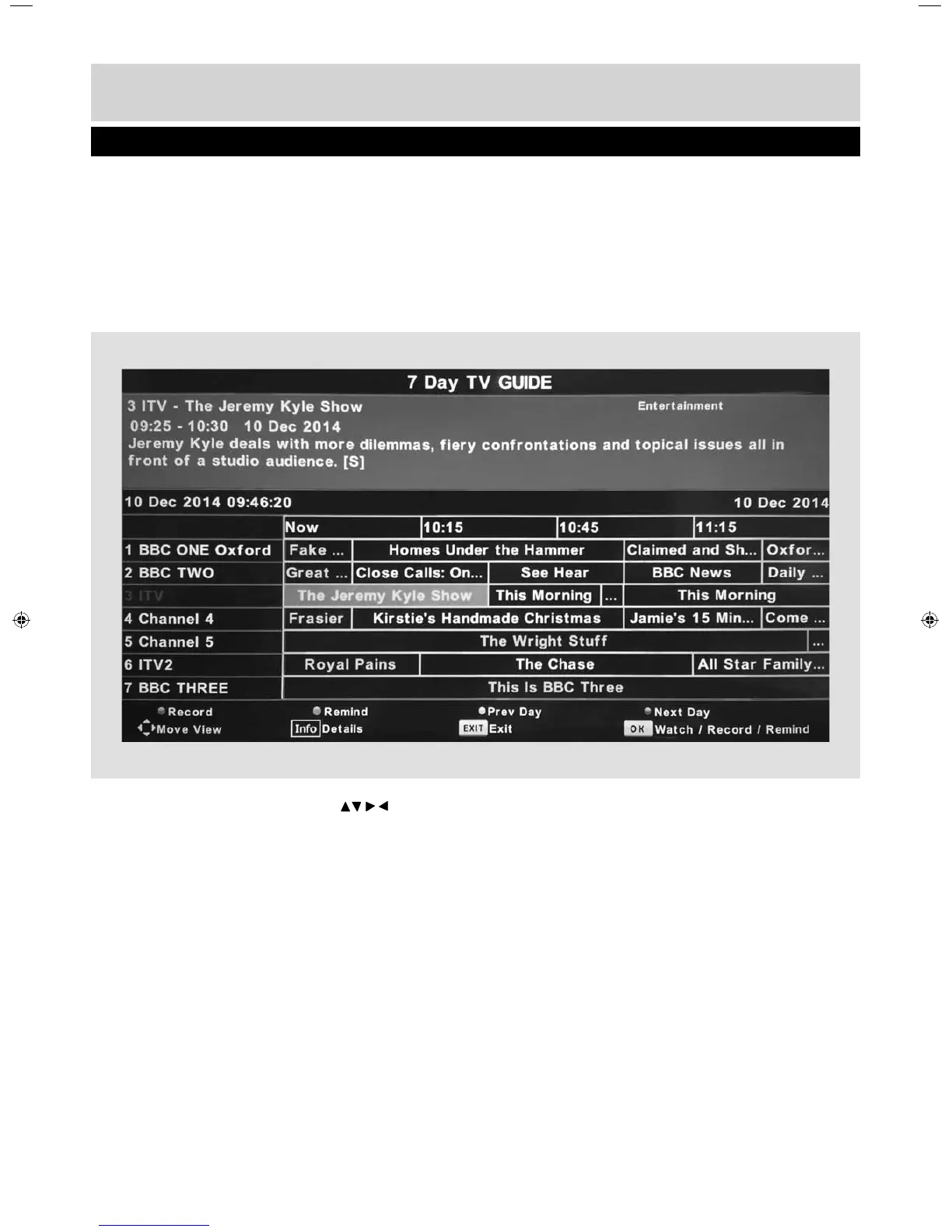 3) Press [EXIT] to exit the 7 day TV Guide.