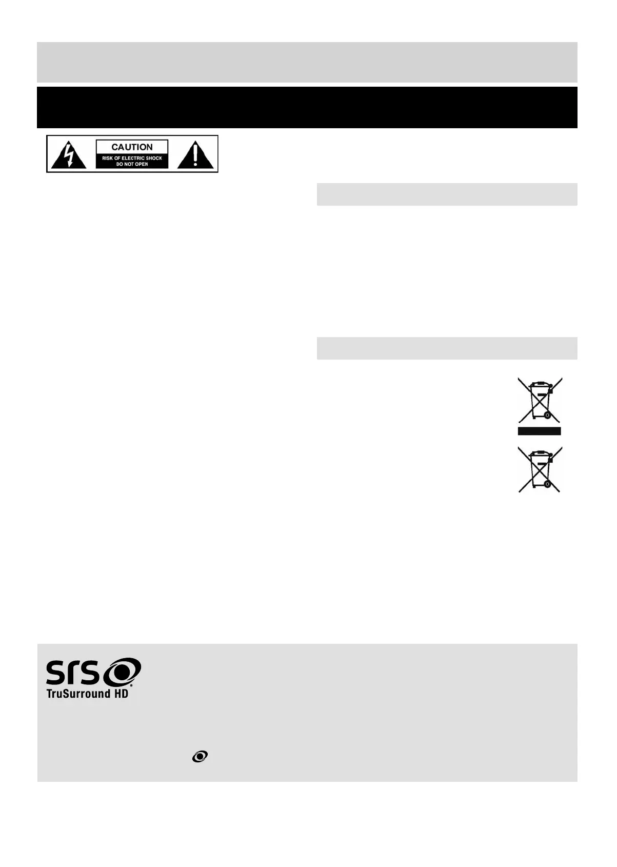 TruSurround HD, SRS and the symbol are trademarks of SRS Labs, Inc.
