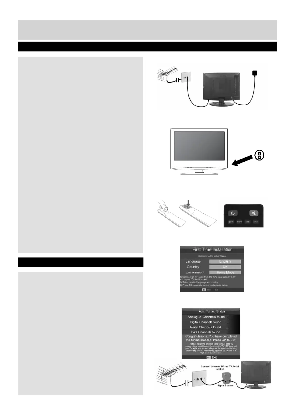 connecting signal booster and re-tuning the TV.