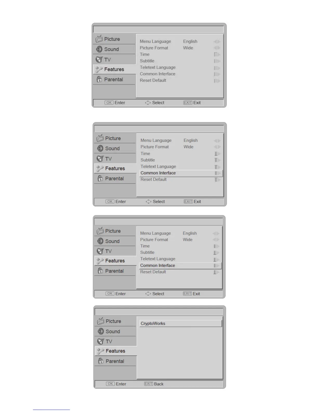 3. Select Common Interface to view the menu options and information on the inserted CI card.