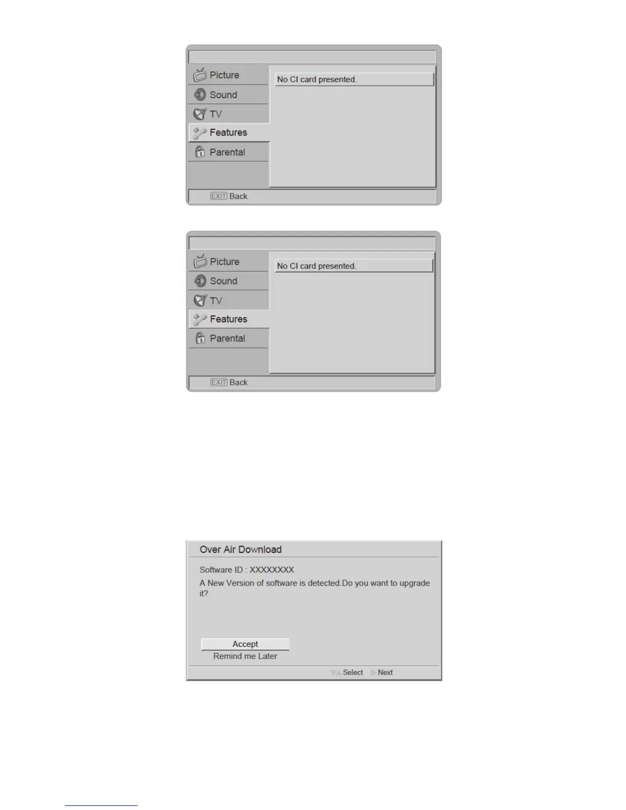 5. When module is removed, the “Common Interface” menu will disappear from the screen.