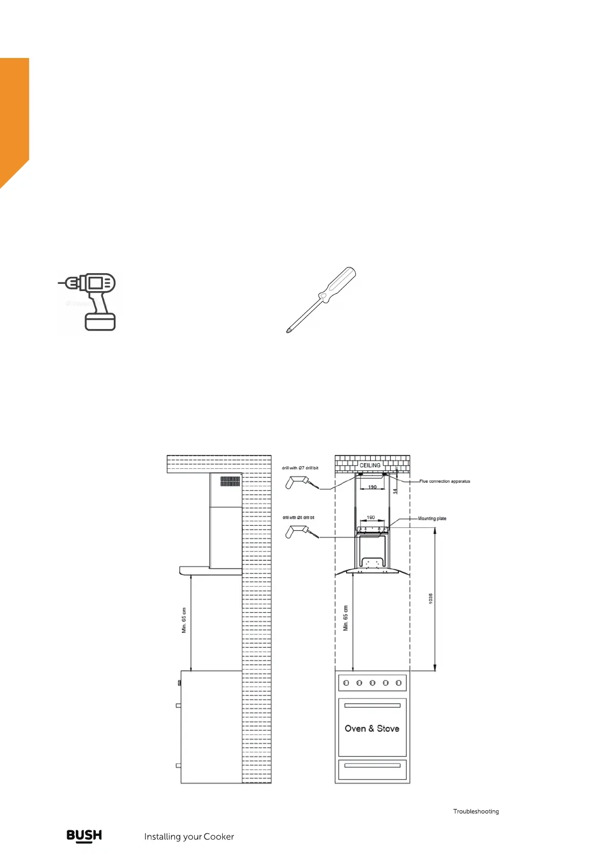 PLEASE NOTE: The cooker hood must be installed at a minimun of 65cm above the hob