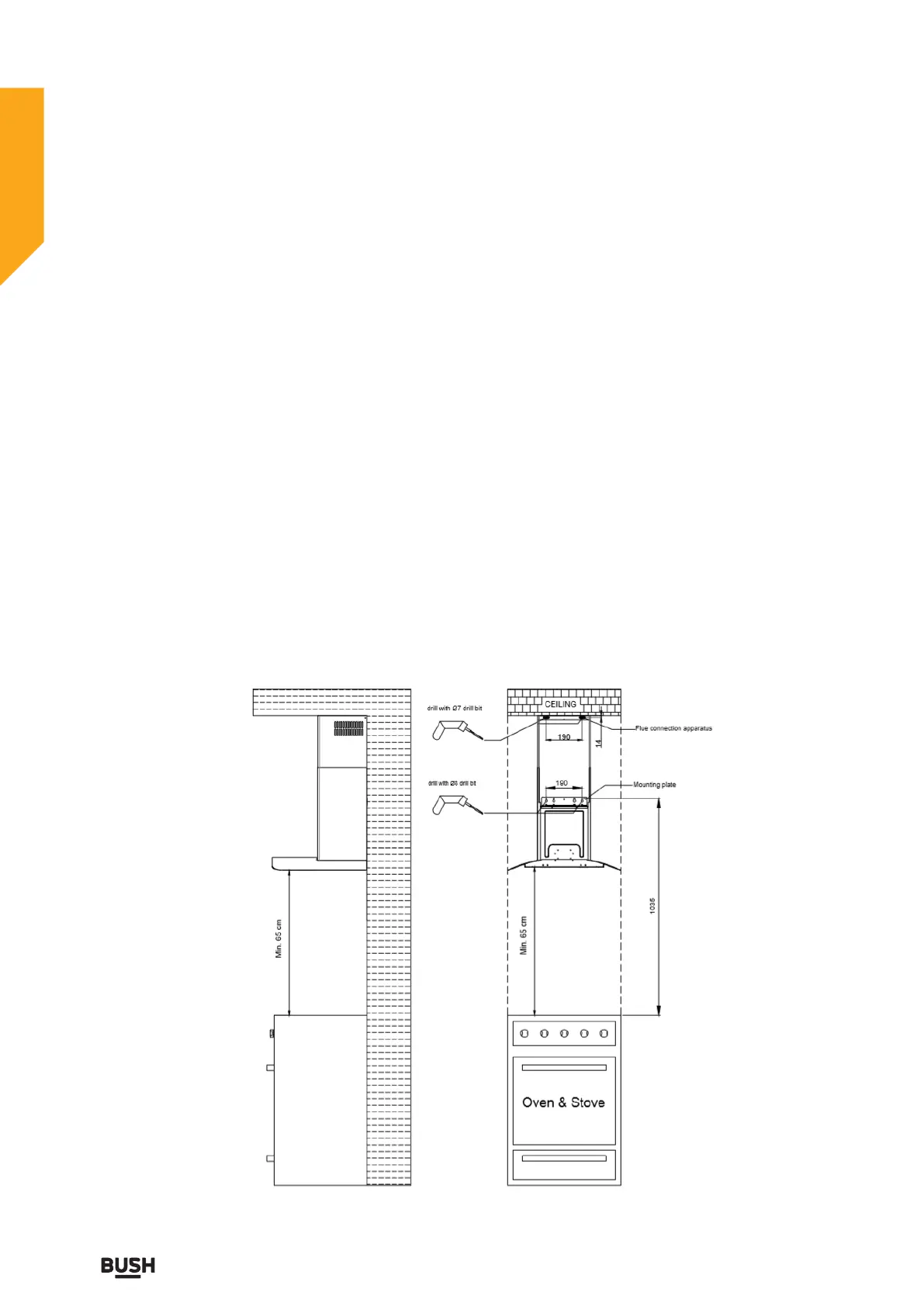 PLEASE NOTE: The cooker hood must be installed at a minimum of 65cm above the hob