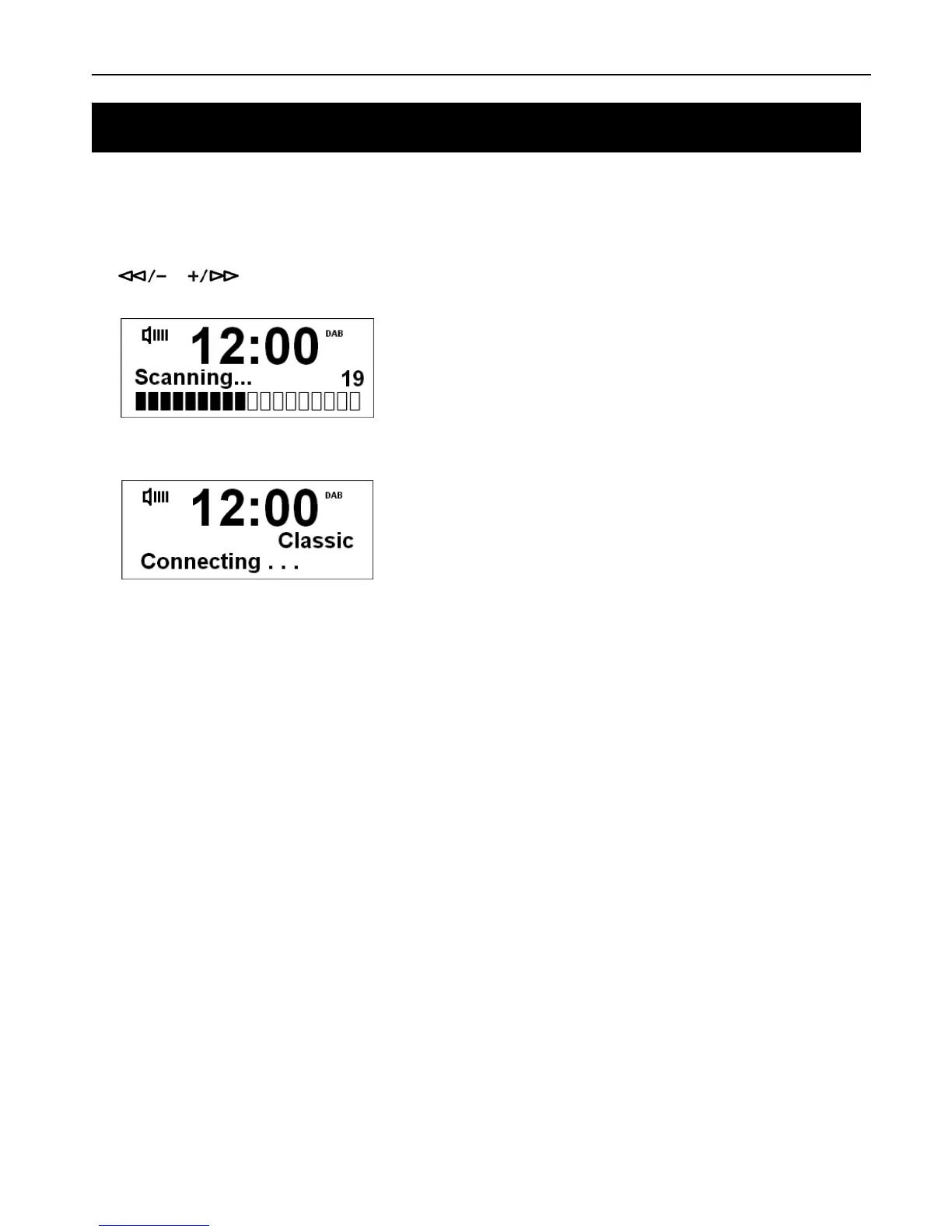 2. If no DAB+ signal is found in your area, it may be necessary for you to relocate your radio. Also make sure your